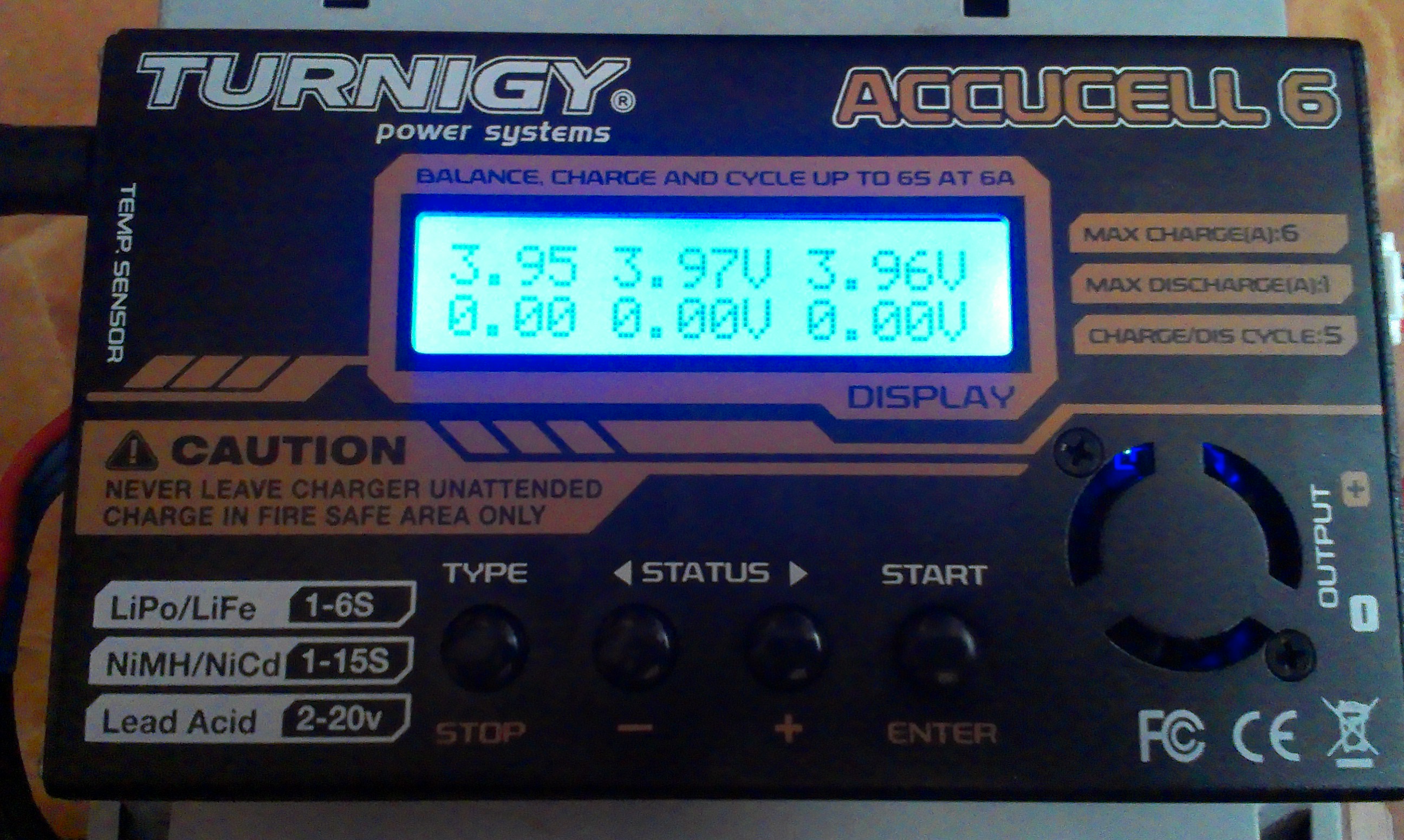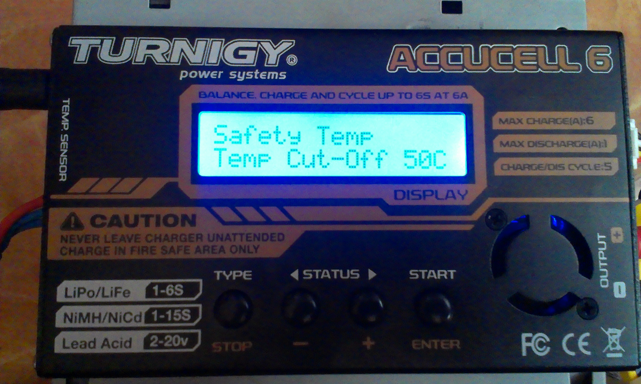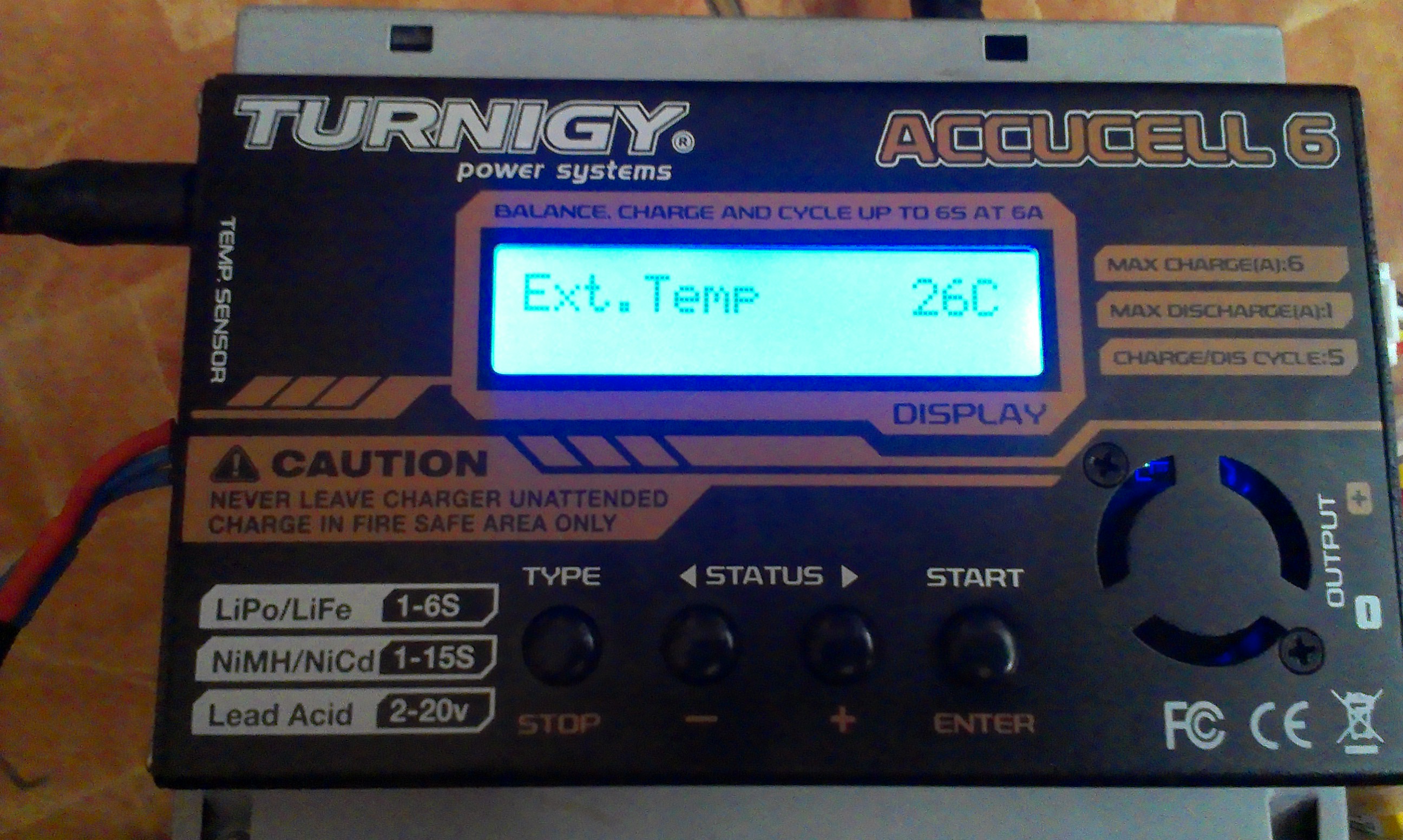 Tak po 13 tich dnoch na colnom oddeleni v BB, celkovo 26 dnoch mi nabijacka s akumularormi dorazila. Zdroj pouzivam ATX 350W, teplotne cidlo LM 35 DZ (0-100°C), konektory DeanT. Turnigy Accucell 6: Příloha: