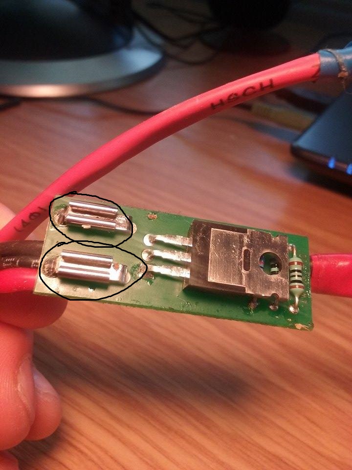 Sklenenná ako taká bez pridaných káblov tam nemala ako byť Patrí tam autopoistka napr. http://www.jefftron.cz/Prislusenstvi/Po ... i-25A.htmlďalšia rada, prerob si kabeláž, napájanie na mosfet máš hrozné, nezacínované spoje a máš aj predranú kabeláž, ryskuješ skrat a zničenie zariadenia