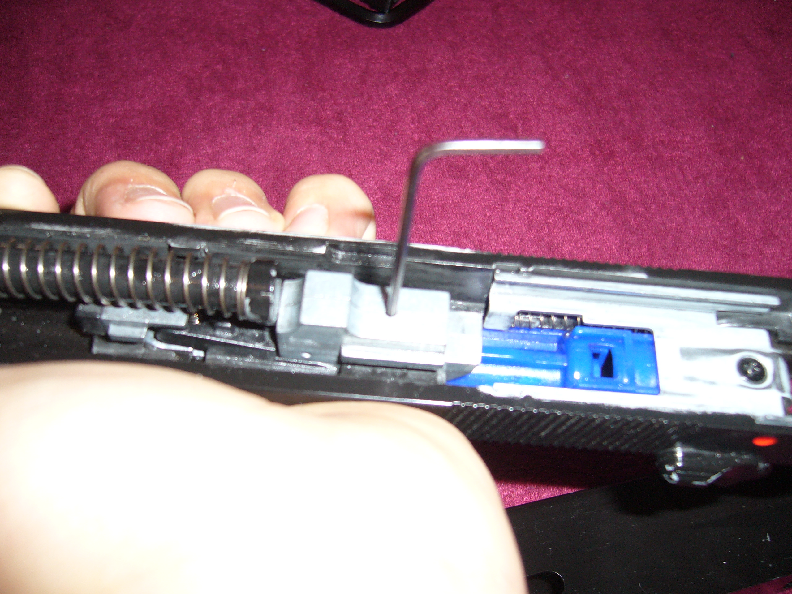 Stím imbusem šteluju hop up. Prasklina vadí, závěr je poskozeny ale zalezi jak moc. Pokud prasklina nepochoduje dále je to jeste dobry.. Pokud mas kovovej zaver, ten svařit nejde je to nejaka slitina hliniku a zinku, takze jedine nový.