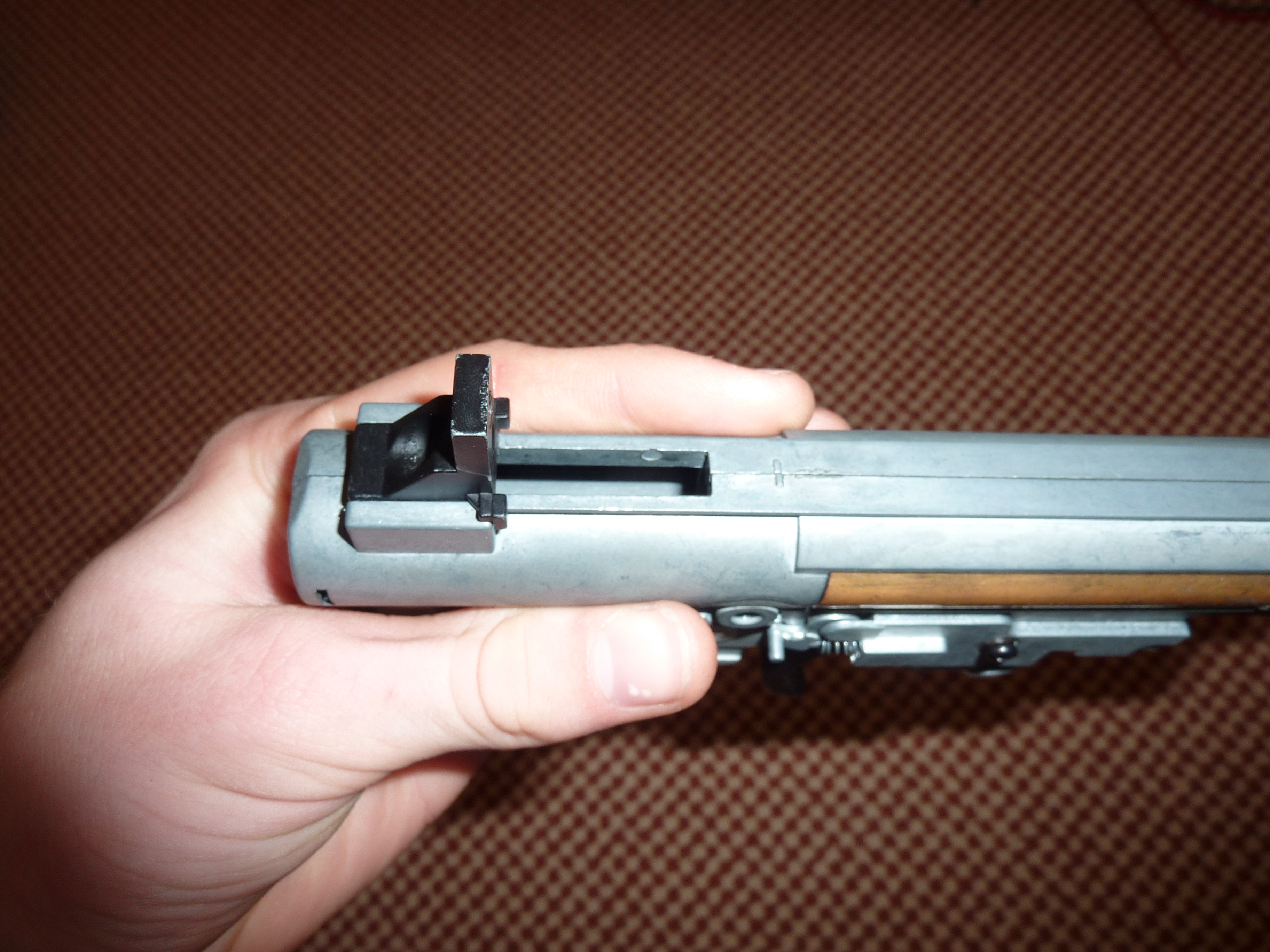To standardní určitě neni, vypadá jak kdyby to byl mech z nějakýho blowbackovýho kvéru...tos kupoval jetou?