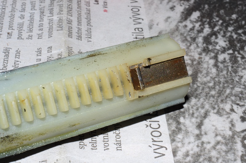 Dobrý večer! Tak jsem si sehnal šroubováčky a nářadí. Díky Jeffově bezvadnému návodu jsem se bez problému dostal k potencionální vadě mechaboxu jako celku. Přikládám fotografie oné vady. Myslíte, že je to tedy ono a že budu muset koupit to, na co odkazoval Daven, nebo tam nějak vadil ten ulomený kousek (ne, nenašel jsem ho) ? Kola jsou v pořádku, jinde jsem žádný defekt neobjevil. Děkuji!!
