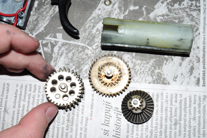 Mockrát vám oběma děkuji za odpověď! Jen abych využil téma naplno, chtěl bych se zeptat - pokud by se závada týkala kol v mechaboxu (předpokládám, že se ulomil zoubek z jednoho kola, protože při obrácení mechaboxu je slyšet, jak tam cosi cestuje) kde a za kolik bych mohl poškození napravit? A měl bych do této zbraně investovat formou upgradu? Ač je mi proti srsti s tím teď střílet, přikládám video nemocné mp5 a jejího nářku: http://www.youtube.com/watch?v=2xaZqgHQ ... e=youtu.be