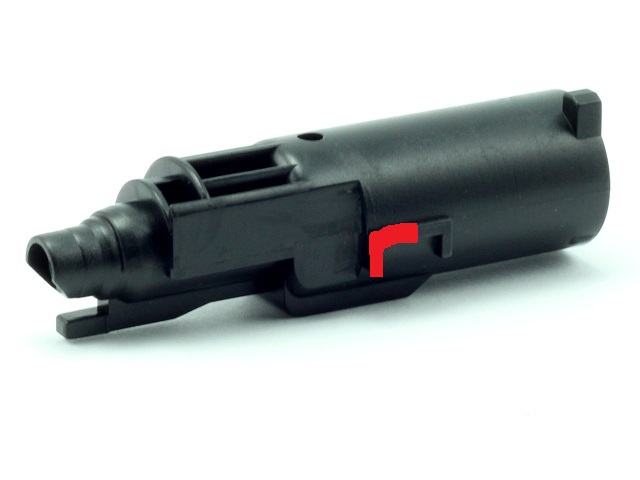 mam WE MEU SOC a mam podobny problem tiez asi 5-6 guliciek a potom neni sila na dalsiu strelu, niekedy sa tiez sekne blowback. Rozobral som a nasiel som ze je ulomene na tryske toto, zvýraznim to a uploadnem vam to tu (nechce sa mi zas rozoberat a fotit), neviem ci sa celý problem vyriesi ked vymenim len tu trysku. Mam brat novu Guarder alebo WE? a asi aj zoberem ten gas route...