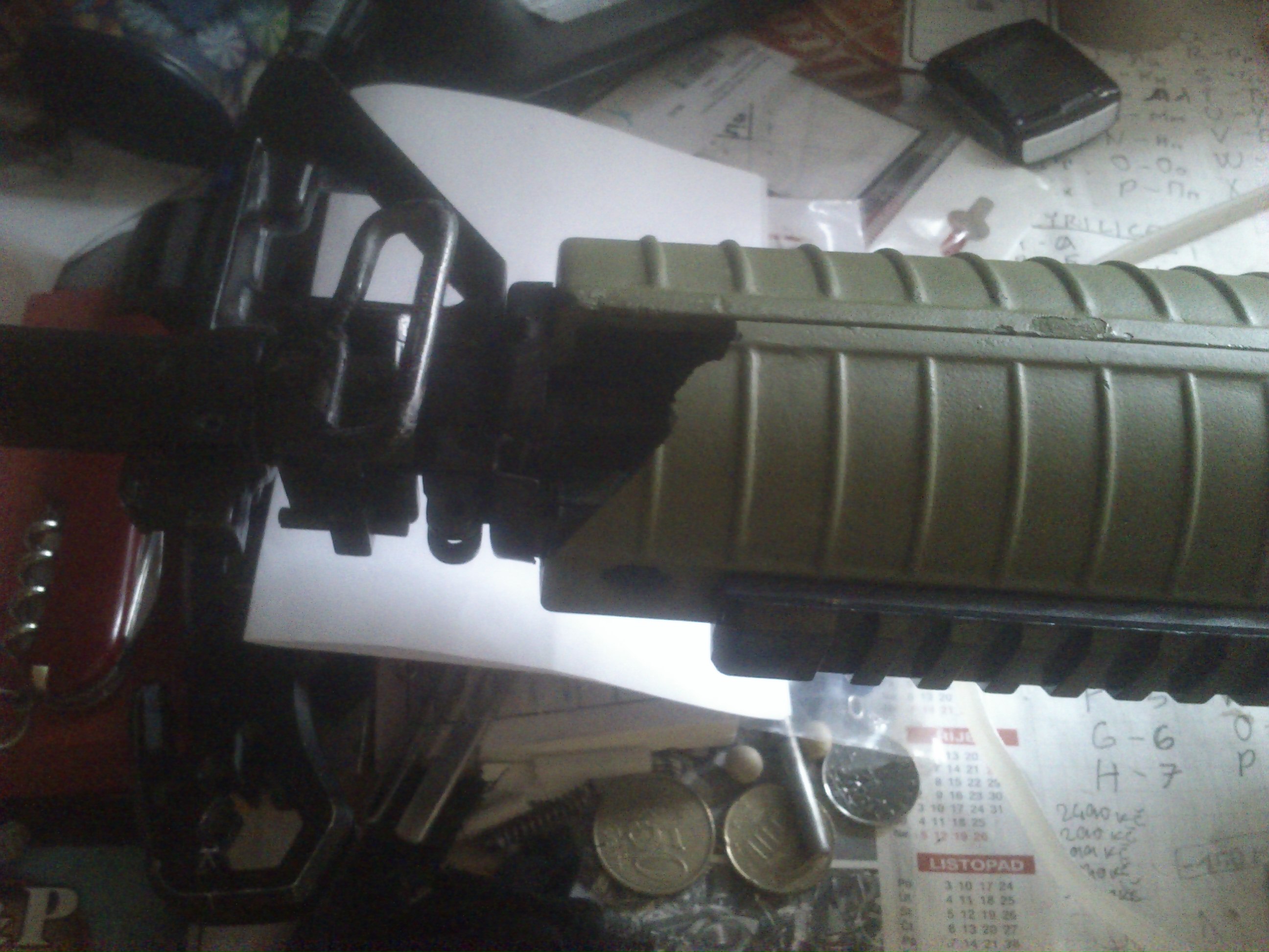 Mám ji pouze na dekoraci. A chci se zeptat. Koupil jsem si předpažbí plastové černé magpul, kde v balení byly i tři nebo čtiři nasazovací plastové lišty RIS, ale nejde mi to nasadit na mou M4(ale v obchodě tvrdili, že to půjde i na APS, ale mě se zdá, že je to delší)