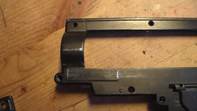 To samý,prasklina jako přes kopírák... Co by jim udělalo, kdyby v tom místě bylo daleko více materiálu - místa tam je dostatek. Každopádně už jsem rozhodnutý jít raději do plynové M4A1 od WE. Bude to určitě lepší, než ten blbej D-Boys, i když "blbej", když se do toho nevrtá tak drží že