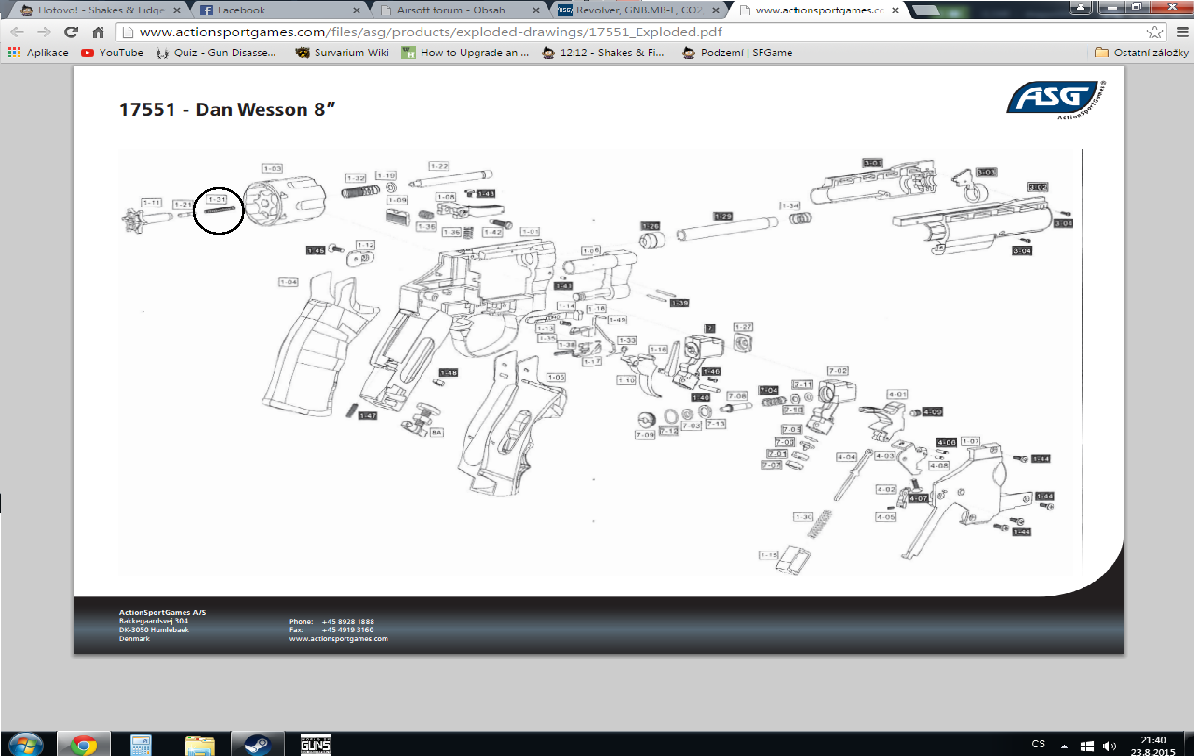 Zdravím, potřeboval bych poradit. Koupil jsem si bazarovku Wessona a má jednu závadu. Ten kluk od kterého jsem ho zakoupil nějakým způsobem (nejspíš mu upadla přímo na válec) ohnul tu železnou osičku nacházející se veprostřed válce. Jedná se o ten výčnělek přímo uprostřed bubnu jenž se zaklesne do těla revolveru a zafixuje tak buben ve zbrani. Ví někdo jak se ta osyčka dá vytáhnout, abych ji mohl nahradit novou? Popřípadě nevíte zda se dá zakoupit, nebo zda ji budu muset zhotovit? Díky