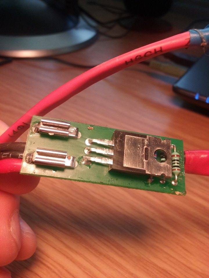 Sklenenná ako taká bez pridaných káblov tam nemala ako byť Patrí tam autopoistka napr. http://www.jefftron.cz/Prislusenstvi/Po ... i-25A.htmlďalšia rada, prerob si kabeláž, napájanie na mosfet máš hrozné, nezacínované spoje a máš aj predranú kabeláž, ryskuješ skrat a zničenie zariadenia