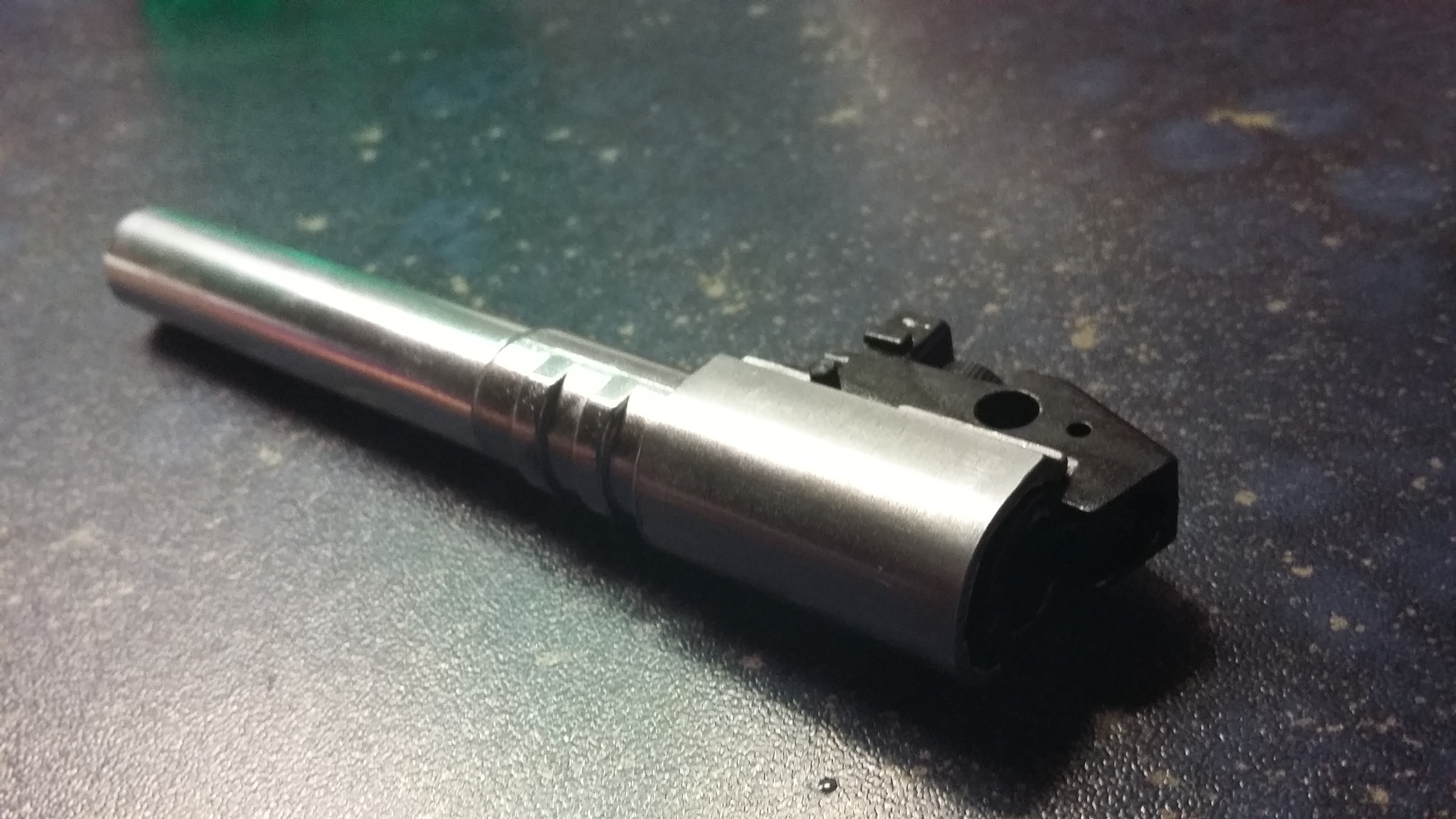Hlaveň ne nepodstatná skôr spúšťový mechanizmus a vodiace koľajnice na závere a na ráme zbrane.