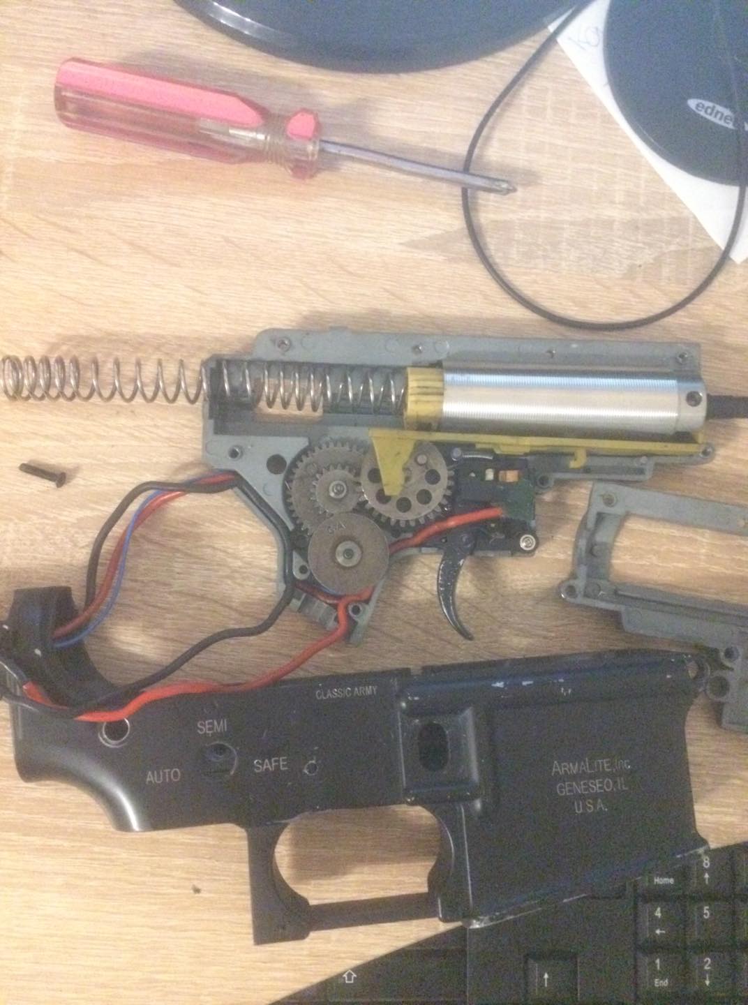 Jelikož jsem baterku dostal až týden po,tak jsem zjistil při připojení, že zbraň nestřílí v první řade jen cvakal motorek a nic se nedělo. Po rozmontování jsem zjistil,že píst byl celou dobu v zadu a mel stlačenou pružinu. ( posílám fotky do přílohy při prvním rozdělání) Podle mě byl píst v háji, tak jsem objednal "Precizní píst s ocelovým hřebenem, SHS" + shs hlavu pístu.
