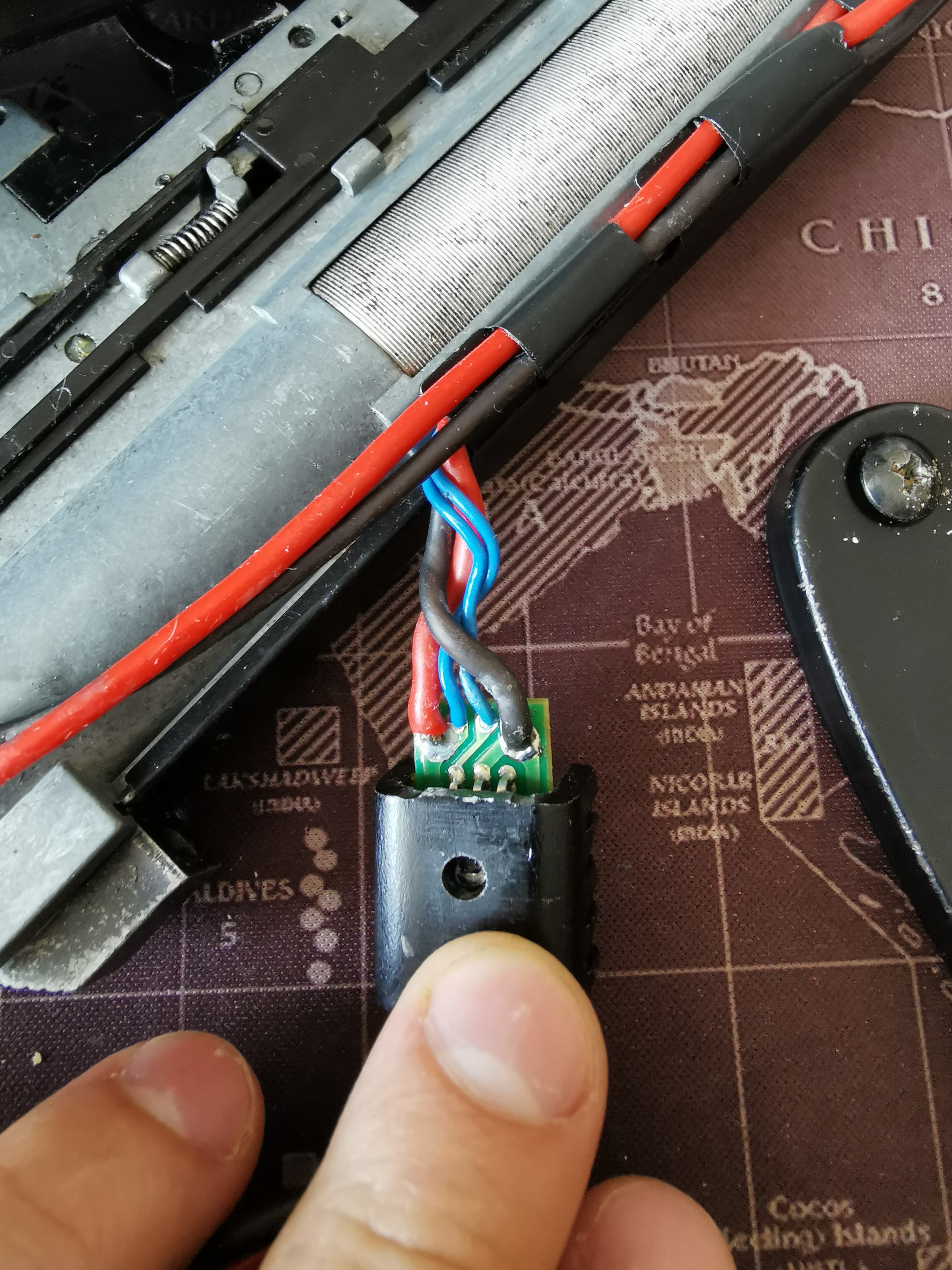 https://airsoftpro.cz/cz/dily-zbrani-up ... qqcsfXcP_s Ten původní co tam byl měl napájené 4 kablíky na tištěný spoj, od spouště šly 2 modré na tištěný spoj do 2 prostředních pozic a pak černý a červený od motoru na krajní pozice.