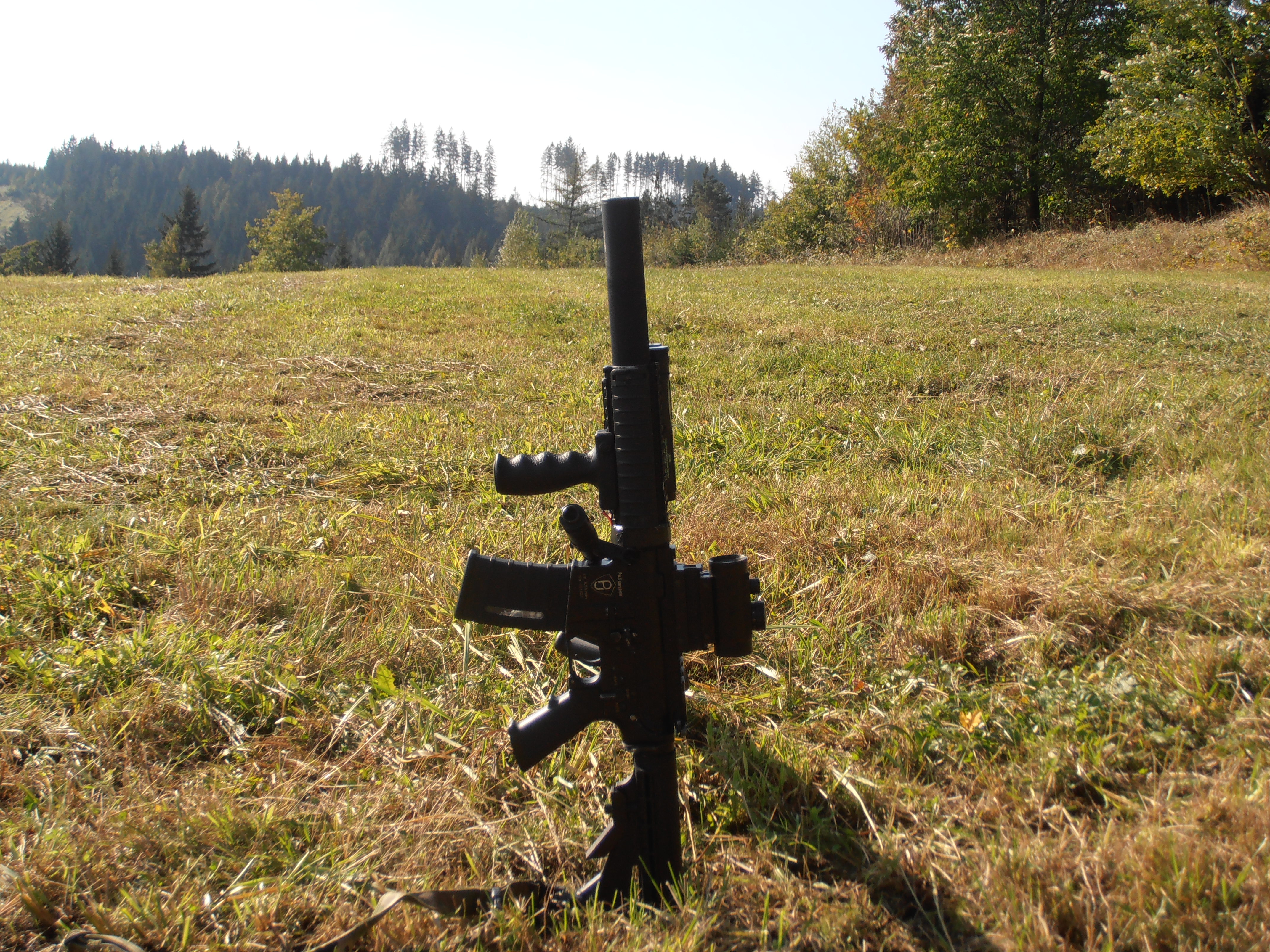 Moje SL9, 170m/s s 0,20g bb. Strilim 0,40ky BLS. Ma za sebou prvni akci a maximalni spokojenost, vyuzivam jak optiku tak kolimator. V patek jsem instaloval 650mm 6,03mm hlaven shs a presnost se rapidne zvysila, kulickou uz to tak nehazi, soustrel lepsi