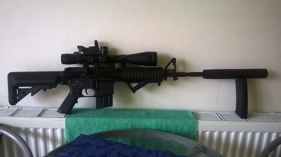 Moje m4 od Dboys, nyní čeká na upgrade= cnc mechabox, m170, shs 6,03 hlaven 600mm, SHS vzduch, úprava na semi atd.. atd...Kombinace útočné pušky, optiky a otevřeného kolimátoru je pro číslo jedna a hraje se mi s tím výborně  přivítám jakékoli kladné, či záporné komentáře
