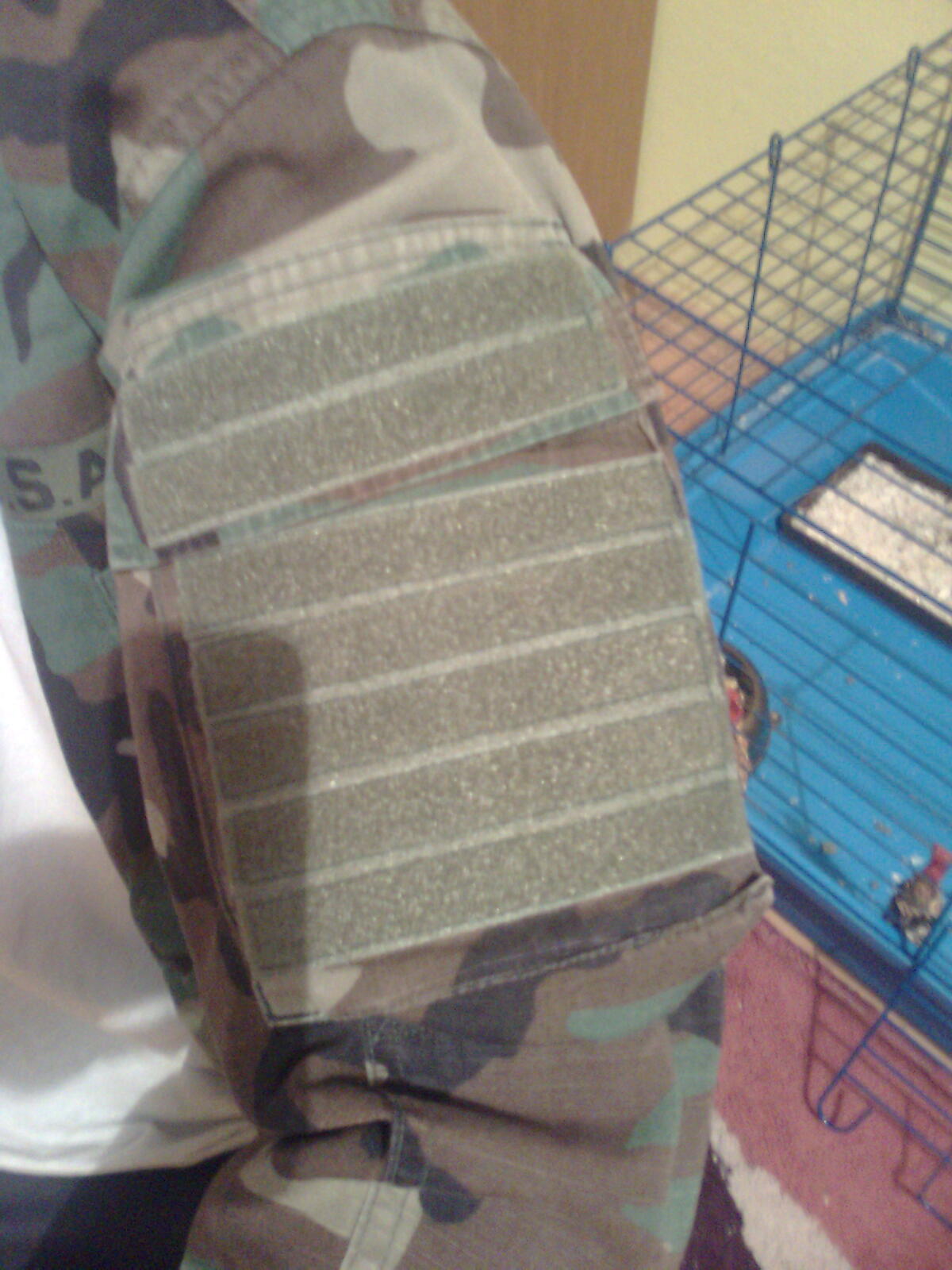 Po nespočtu nevydařených pokusů o samovyfocení jsem to vzdal a mám jen jednu fotku (se suprovým pozadím klece mýho králíka). Vyfotit si rukáv tak, aby tam byla vidět celá přešitá kapsa a totálně se neleskla je o dost těžší, než jsem čekal  . seals: v neděli máme trénink, tak ukecám kámoše ať mi ty kapsy nafotí a postnu to sem Příloha: