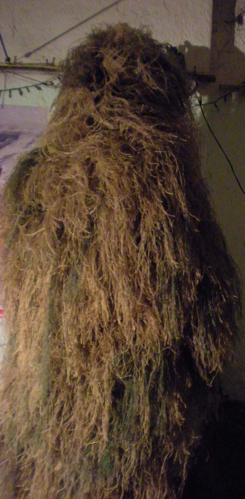 Moc pekna prace:-) jinac jo. Puvodni hejkal maskoval dokonce HODNE dobre. akorat ja sem zacinal takze inspirovan fotkama a emerickejma filmama jineho zamereni nez sem mel videt sem ho udelal s chlupama aji zepredu. coz je desne neprakticky vzhledem k terenu zpusobu pohybu. takze sly "brisni chlupy" dolu. pak sem zjsitil ze sem si ho mel udelat o par cisel vetsi, a taky ze ve chvili kdy sem vyjel na prvni poradnou akci je hejkal ta nejnemoznejsi vec co muzu v uz tak napranem batohu smykat. sice se to da pouzit i misto spacaku ale primarne se v tom chodit neda a "sniper mise" neexistujou. tzn nekam se de, a "nasazeni" si musim vychytat sam, hands down kolik situace se dal lip osefovat s minimem nasazenych lidi atd... a prevlikat se hejkal- maskace-hejkal- maskace je casove narocne, pominu situaci kdy je hejkal totalne promoceny...  takze sem premyslel az sem vypremyslel ponco co je ve zbalenem stavu asik 20x30x10 cm. a rozbalenem stavu porad pouzitelne jako "minihejkal". a plastenka zaroven  nahodit to na sebe je otazka 2 min i s navazovanim vegetace... coz je vec na kterou hodne as lidi pouzivajicih hejkal zapomina... prihodim fotky jen co bude venku svetlo. nechcu fotit zatisi hejkala na kuchynskem koberci