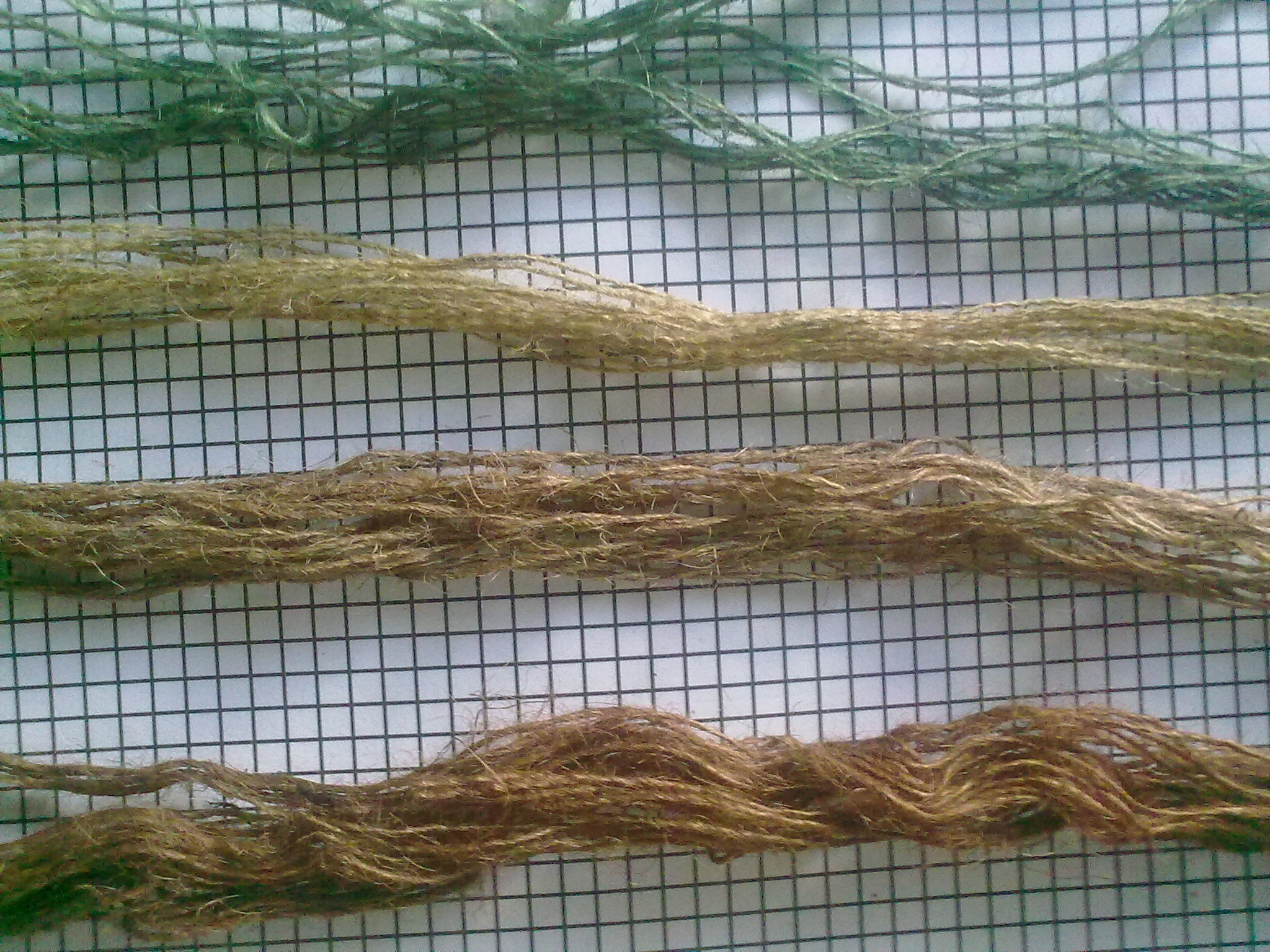 konečne vyschla juta a celkom pekne chytilo tu hnedu zaradom zelená / pôvodná farba juty / svetlá hnedá / dnešná tmavo hnedá Příloha: