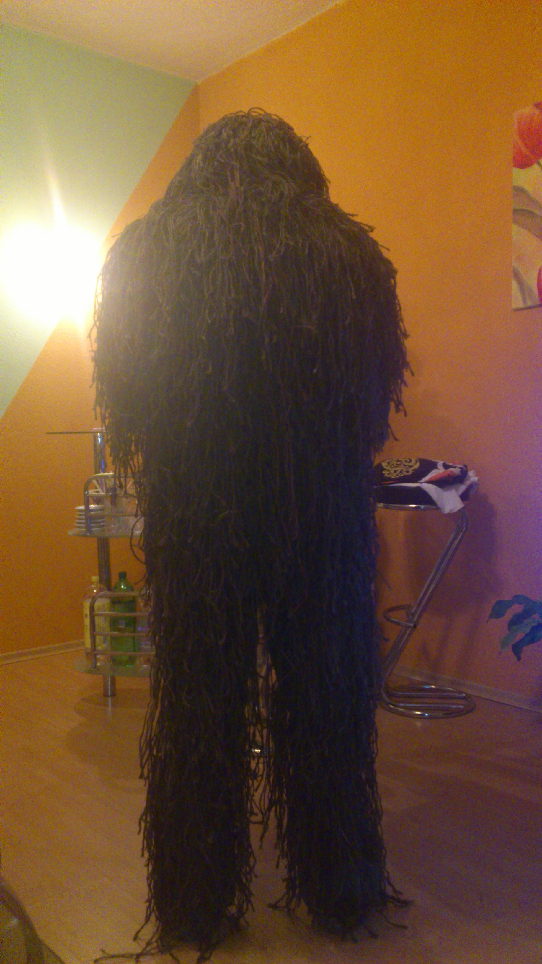 Jo je to barvený v zelený a hnědý barvě, jen je problém s tím že látka je z 50% nylon kterej se barvit nedá, takže se to na to chytá fakt blbě. Je nutná silná koncentrace a špatně se ladí výsledná barva (tohle měla být oliva a je to hnědý)... ale líbí se mi to, myslím že super hadry na nějakou špinavou práci jako opfor na cvičení, nebo třeba stalker.  A už se těším jak z toho bude hotovej hejkal.