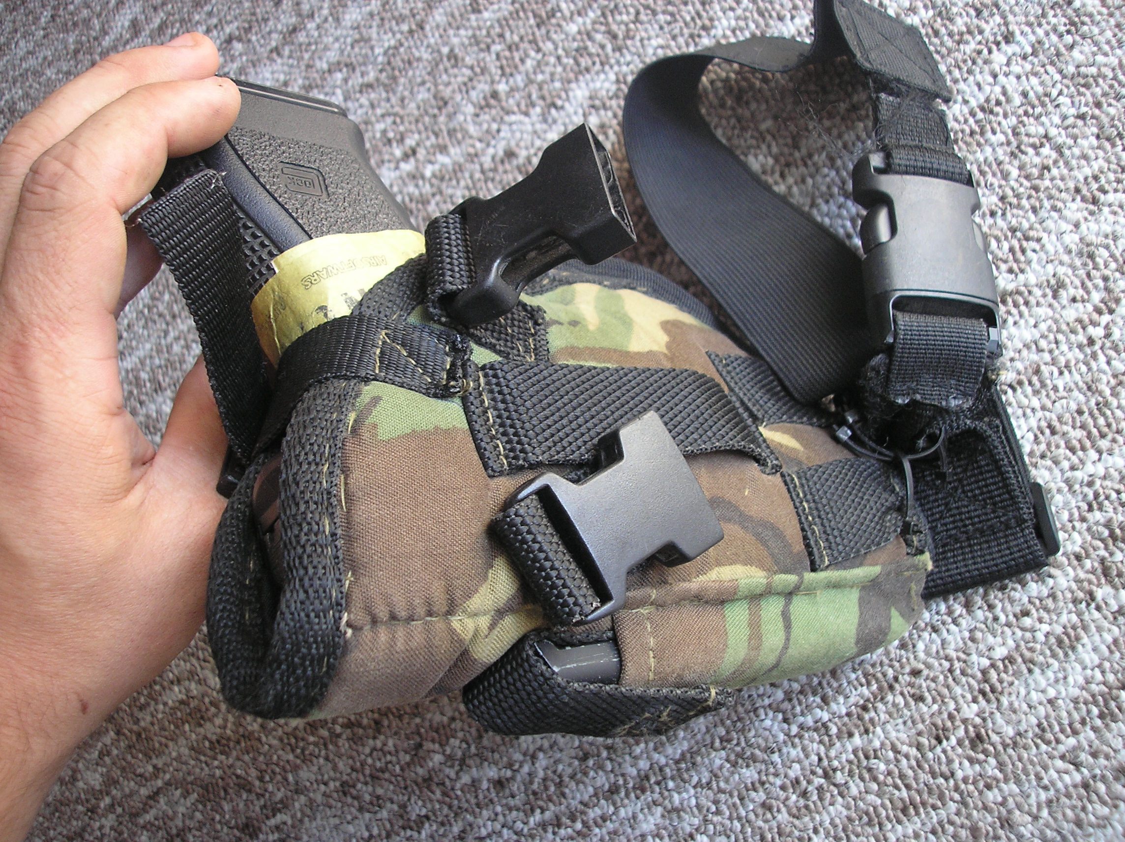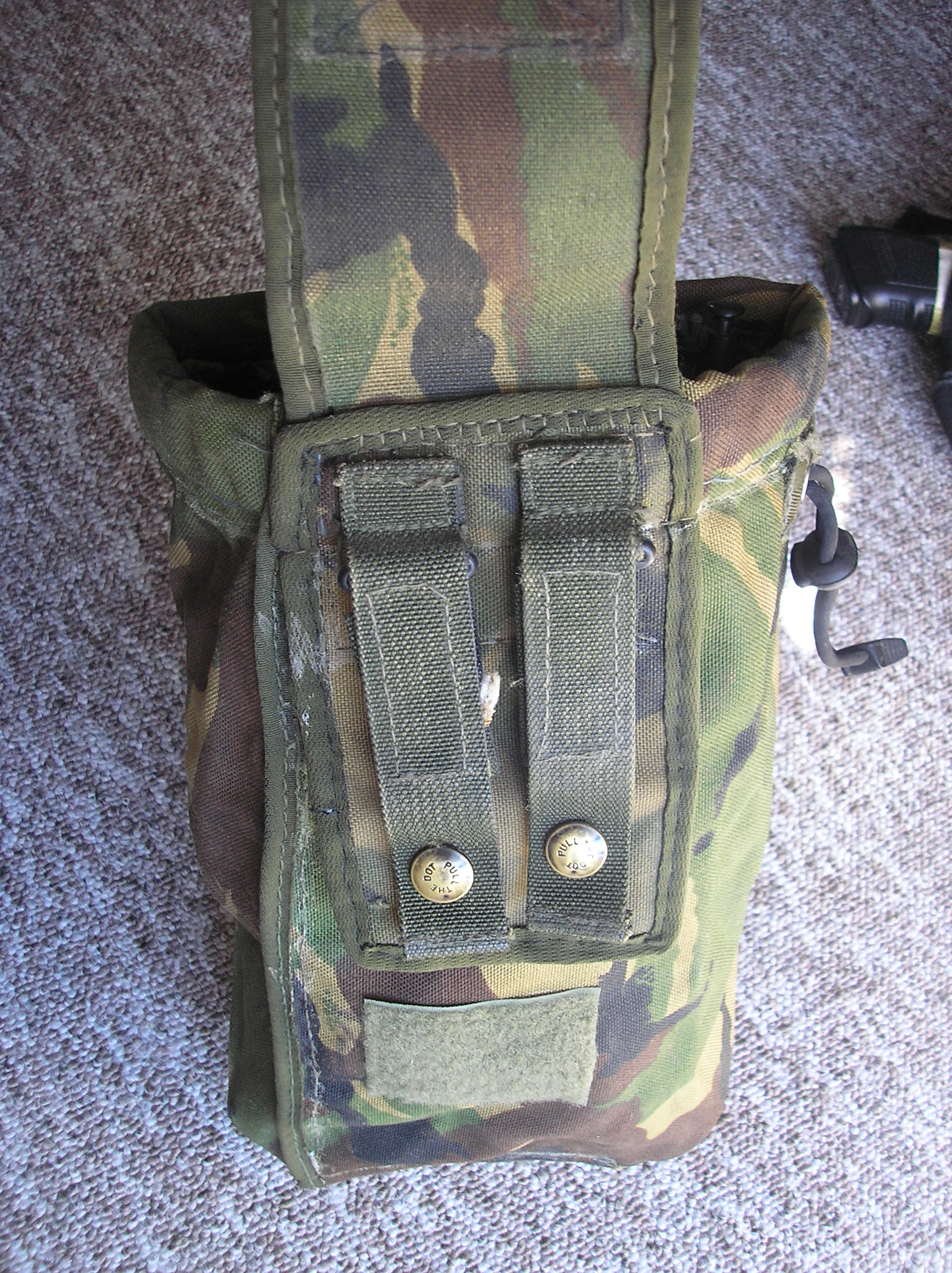 jsem uz se dlouho chtel dat nakej svuj vytvor .. siju teda jen v ruce a jsem mistr improvizace ...  pistol holster DPM: je to takovy hodne pankovy sity ze zad staryho baglu a potahly latkou z combat smocku, naprt jsou ty cerny lemy a doplnky .. v planu je verze 2 z DPM cordury a zelenejma lemama a par dochytavkama .. odhazovak DPM: sitej z cordury DPM (kryci car odstrizenej z all arms ruckascku - "televize") vychytal jsem si ho presne dle mejch predstav, opatren klasickyma PLCE sponama na opasek