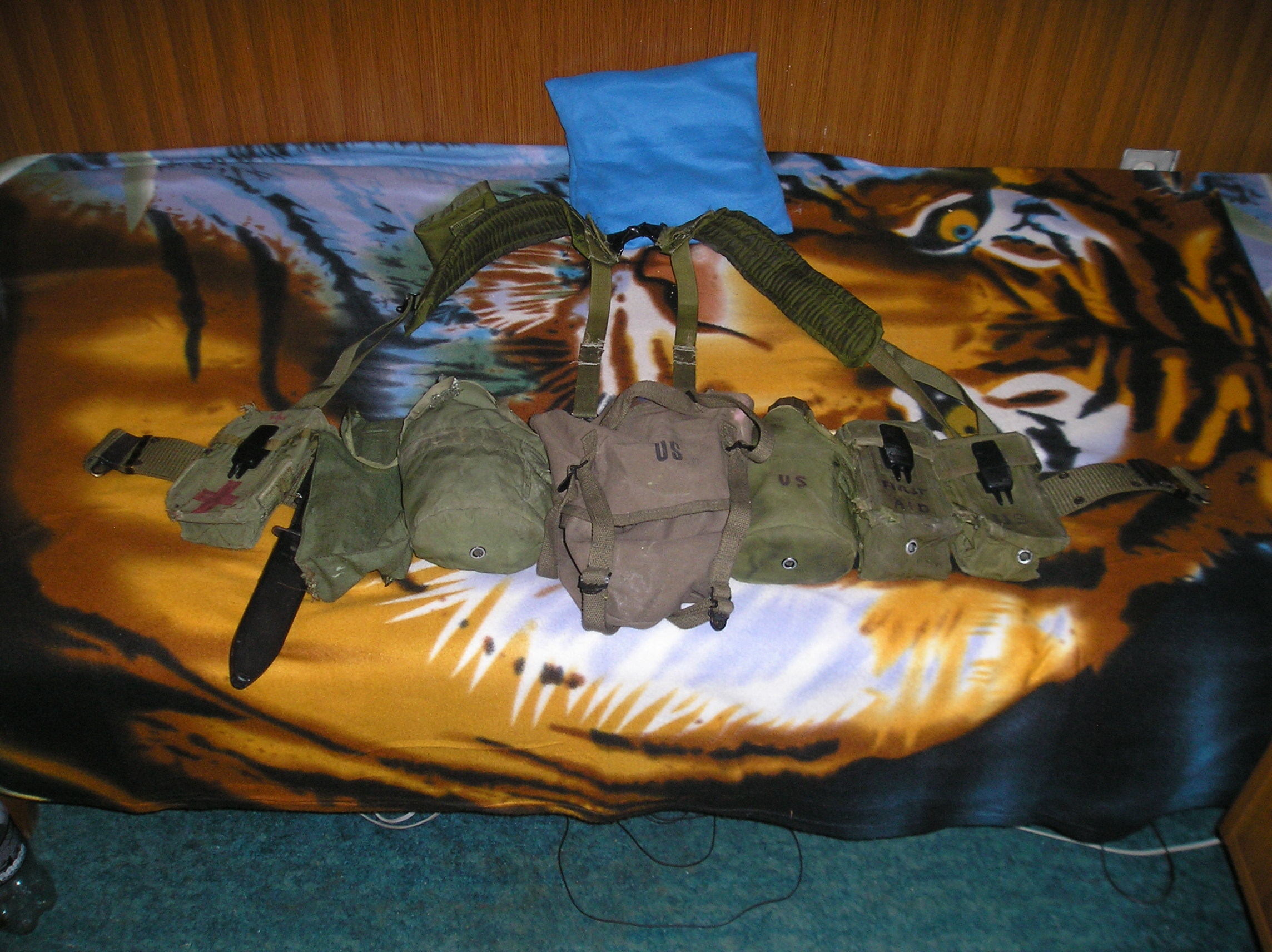 trocha oldschoolovejch krámů (1q canteens, M16 pouch, butt pack, MK3, custom H-harness, A-Z pouch)