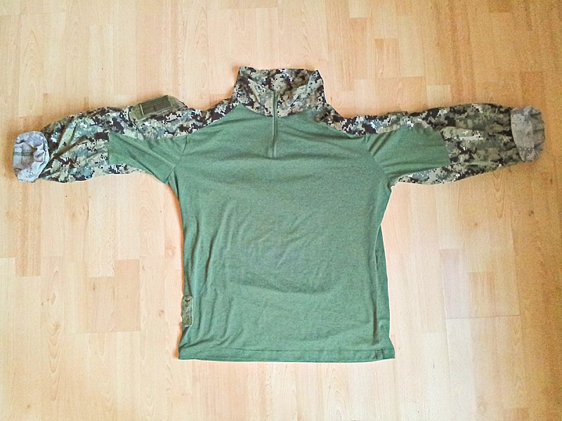 Hraju airsoft nejake dva roky, zadnou konkretni jednotku nenapodobuju, vzdy si beru to co se mi hodi libi a vyhovuje. Pred vic nez pul rokem sem zahlidl ze existuje maskovaci vzor AOR2, ktery je svetlejsi (zelenejsi) nez MARPAT a mohl by se do nasich podminek taky hodit. Podarilo se mi sehnat kopie z tajwanu a ciny, ktere nestoji takovy sileny majlant jako originaly a poskladal sem nasledujici vystroj. Na nase letni zelene prostredi je to celkem dost vhodne, osobne myslim, ze lepsi nez multicam. Ale na podzim se budou uz vic hodit MARPATy, ktere jsou vic dohneda. Chapu ze nekdo bude ohrnovat nos, ze to jsou hnusne kopie, ale reenacting neprovozuju, takze mi to na "takoveto vikendove valcenicko" zatim staci  EDIT: Takze na nasledujicich fotkach (krom prilby) je pomerne novy digitalni vzor urceny vyhradne pro americke namornictvo (NAVY) do lesnateho terenu znamy pod oznacenim AOR2. Tento vzor pouzivaji v soucasnosti jednotky NAVY SEALs. Nejedna se o MARPAT ani CADPAT. Vesta je kopca od TMC 6094 style Plate Carrier AOR2 doplnena o dvojsumku na M4 zasobnik (prava strana zvenku) do kerych se vejdou presne male petky od RedBullu, kazda na 2000 BBs. Pod nimi v kapse vysilacka. Do klokani kapsy se krasne vejdou ctyri M4kovy zasobniky a aby nevypadly, stacilo na jednu stranu zasobniku nalepit maly kousek sucheho zipu. Vlevo zvenku je mini admin pack na nahradni baterky a multitool a uvnitr mam na zkousku Inner Triple Mag Pouch (puvodne urceny do klokani kapsy) se tremi dlouhymi M4kovymi zasobniky. PTT spinac pro levou ruku uchyceny do prechystanyho poutka. Kabelaz ke krkafonu se da dobre uchytit do suchacovych poutek po stranach ramenich popruhu. Zprava mam tak i vedenou hadici od camelbagu. Batuzek na nej je TMC Clips Hydration Carrier. No a odhazovak je taky TMC - Cordura Magazine Drop Pouch - z nej sem akorat odparal popruh pridrzujici ho na stehnu. Helma je kopca Fast Base Jump Military Helmet od Emersonu doplnena o drzaky FMA Z3AD Peltor for MSA Headset TB397. Do nich jsou nasazeny aktivni sluchatka s mikrofonem EMERSON - C-Tac Headset. Doplneno vlastnim "snake" nastrikem. Tahle prilba je zatim jeste ve stadiu priprav, chci tam jeste doplnit drzaky bryli a masky. Proto mam na veste ten krkafon, ktery pouzivam s jinou prilbou. Maskace sou barevne velmi povedene kopie AOR2 od Flash Force Industries. Bohuzel matros je velmi lehky (snad i Ripstop) a neodvazuju si ho prat, pouze namacet ve vlazne vode. Jinak usiti je celkem slusne, spickovy sou ty kneepady na kalhotach, uz nemusim tahat extra chranice na kolena  a jejich vyska se da stelovat zevnitr, takze ja mate pokazda presne na koleni a nikam nesklouzavaji. Na triku jsou fajn kapsy, ktere jsou uz nasite zesikma a pojistene jak na origu dvema knofliky a suchacem na cennosti. Material na trupu neni takovy ten klasicky funkcni co zname z taktickych tricek, coz je skoda, spis jakoby bavlna. No ja si proste pod nej vzal lehky funkcni tricko a pohoda, ani teplo, ani zima  EDIT: Po nejake dobe sem zjistil ze kopie od TMC je fakt silena nouzovka a vymenil sem vyrobce za tajwanskou firmu A-Two. Dale v tomhle trejdu sou fotky jak vypadaji jejich vyrobky.
