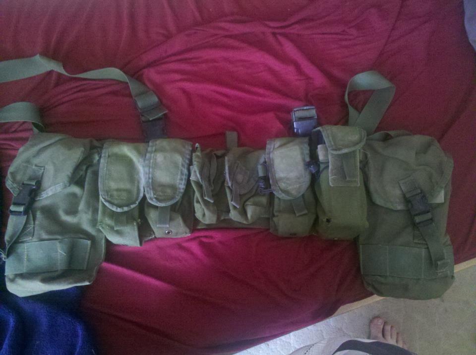 Tak se taky pochlubím posledním nákupem a velkou radostí - všecko funglovky, nic z druhé ruky. Pořídil jsem si vestu ALP Modul I/SOG Mk5 ve vz.95 s upravenými rameny + hromadu ALP sumek k tomu. Dále jsem kosu osadil Kinggun duralovým předpažbím s krytkama a nakonec pořídil zelenej Blackhawk Rigger's belt (ten jsem nefotil, prostě opasek). No a putuje ke mě ještě pár dárků, pak nadhodím