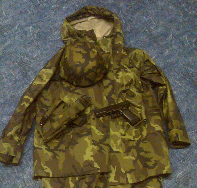 ECWCS ARČ bluza a kalhoty čínská kopie MICH-2000 a na ní Vz. 95 potah Stehení pouzdro dasta Vz. 95 Poutko pro pistoli od MFH Příloha: