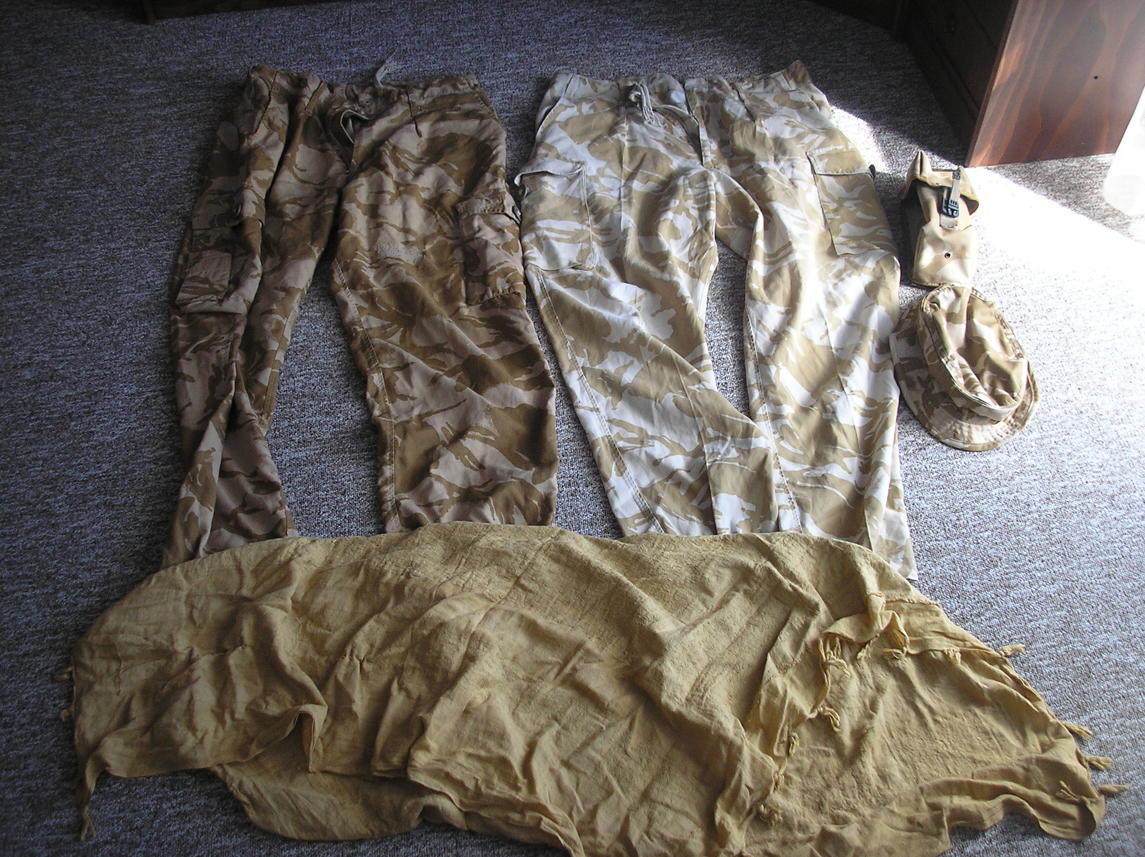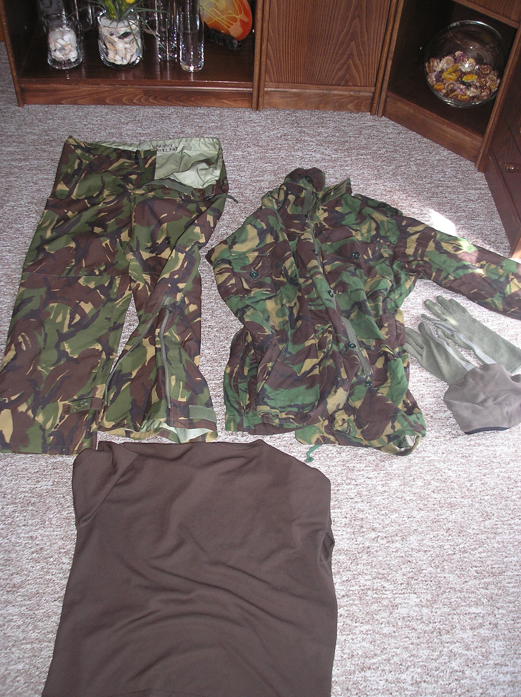 Tak jsme zas jednou byli za "zasobovacim dustojnikem" ... foto c1: smock combat, UBACS, temerate a tropical combat trousers + shorts v MTP foto c2: wet weather trousers s2000 (trochu apgrejt starejch goracu), combat smock 80´ oboje v DPM, americky nomexky a slusiva tenka fleese hucka na zimu pod blembak ... no a coolmaxovejch tricek neni nikdy dost foto c3: lighweight a tropical combat trousers, kloboucek a utilitka v desertu a suprovej shemag nazaver
