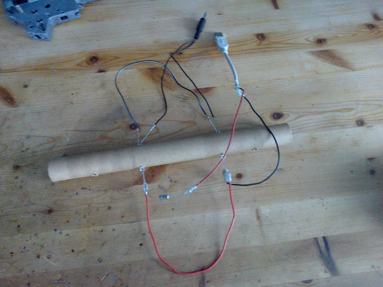 Hotovo. Tak aby jste mi neříkali Velká huba: Kámoš dostal nápad. Sice se to někomu může zvednout rozpočet, ale je to dobrý. Potřebujete k tomu nejlíp 1-2m USB kabel. Na straně, kde se nezasouvá do PC ho "fiknete" a odizolujete jednotlivé dráty. Konkrétně (snad to nepletu, opravte mě, kdyby jo) červenej a černej - ty napojíte na fotodiody podle původního schématu. Pak bílej a zelenej, ty napojíte podle schématu na fototranzistory. Potom následuje druhá část. Kousek od samce USB opatrně odříznout izolaci a přeříznout zelenej a bílej kabel, tu část vedoucí k USB zaizolovat (radši pečlivě, nepřemýšlel jsem, co by se stalo kdyby se spojily...), a ty části vedoucí k diodám napojte podle schématu na jack. Poté vše pečlivě zaizolujte a ve výsledku dostanete dva konektory poblíž sebe - zapojíte do ntb zvuk a napájení a dále máte podle délky kabelu 1-2m "prodlužku" a až poté samotný chrono. Takto můžete mít ntb na stole, zbraň s chronem na posteli a můžete vesele měřit. Tohle je má betaverze a hodlám ji vylepšovat. Zítra, když bude hezké počasí a bude jim fungovat chronometr, budu moci srovnat výsledky. Doufám, že to bude sedět. Diody jsem prozatím narval do trubky od pytlíků na rohlíky, až se dostanu k vrtačce a budu mít čas (snad až za 14 dní) pokusím se dodělat verzi s tyčí od stanu. Doufám, že to bylo pochopitelné, ještě se k tomu vrátím a pokusím se nakreslit schéma a přehlednější postup. Ve výsledku jsem naměřil průměrně ze 6 hodnot 127,5 m/s, což se mi zdá, že tak opravdu je. Uvidíme zítra. Rozptyl byl 3m/s s tím, že poslední 3 měření se shodly na metr přesně. Jen to ude chtít ještě maličko přesnější program, zdá se mi, že jsem to sekal ještě trochu zhruba a taky mám trochu jinej průběh, takovej kulatější, ale to se mi zdá, že je právě dobře ne?