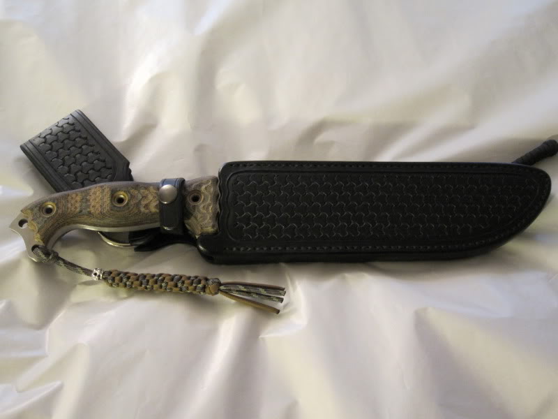 Přikládám fotky - porovnání velikosti s ESEE4 a CZ75D od ASG, porovnání síly hřbetu - ESEE má cca 4,8mm, porovnání velikosti s Acronem, kterýho asi dost z Vás bude znát, hmotnost, porovnání s původním polotovarem a nakonec přikládám fotky přibližný podoby pouzdra z netu.