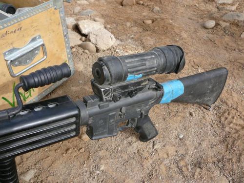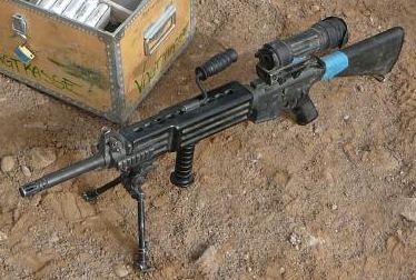 Jinak tyhle M16 LMG to se snad vidí málokde, je to v podstatě M16tka s těžkou hlavní , jinym pažbenim a s nožkama..
