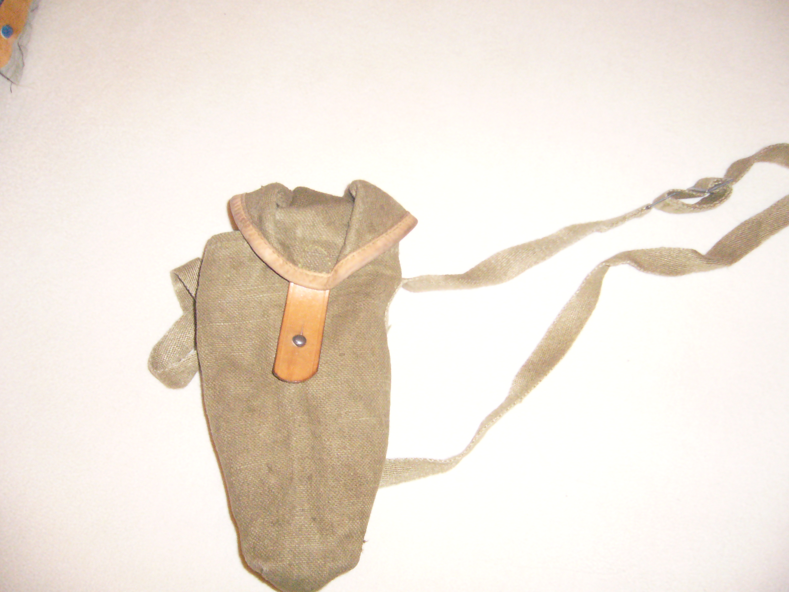 Jedná se o starší typ vaku na plynovou masku, pak byl typ ještě s jednou přihrádkou jako psal deacon a pak ty pogumovaný. Tyhle starý se pak prej ještě lišili různejma knoflíkama.