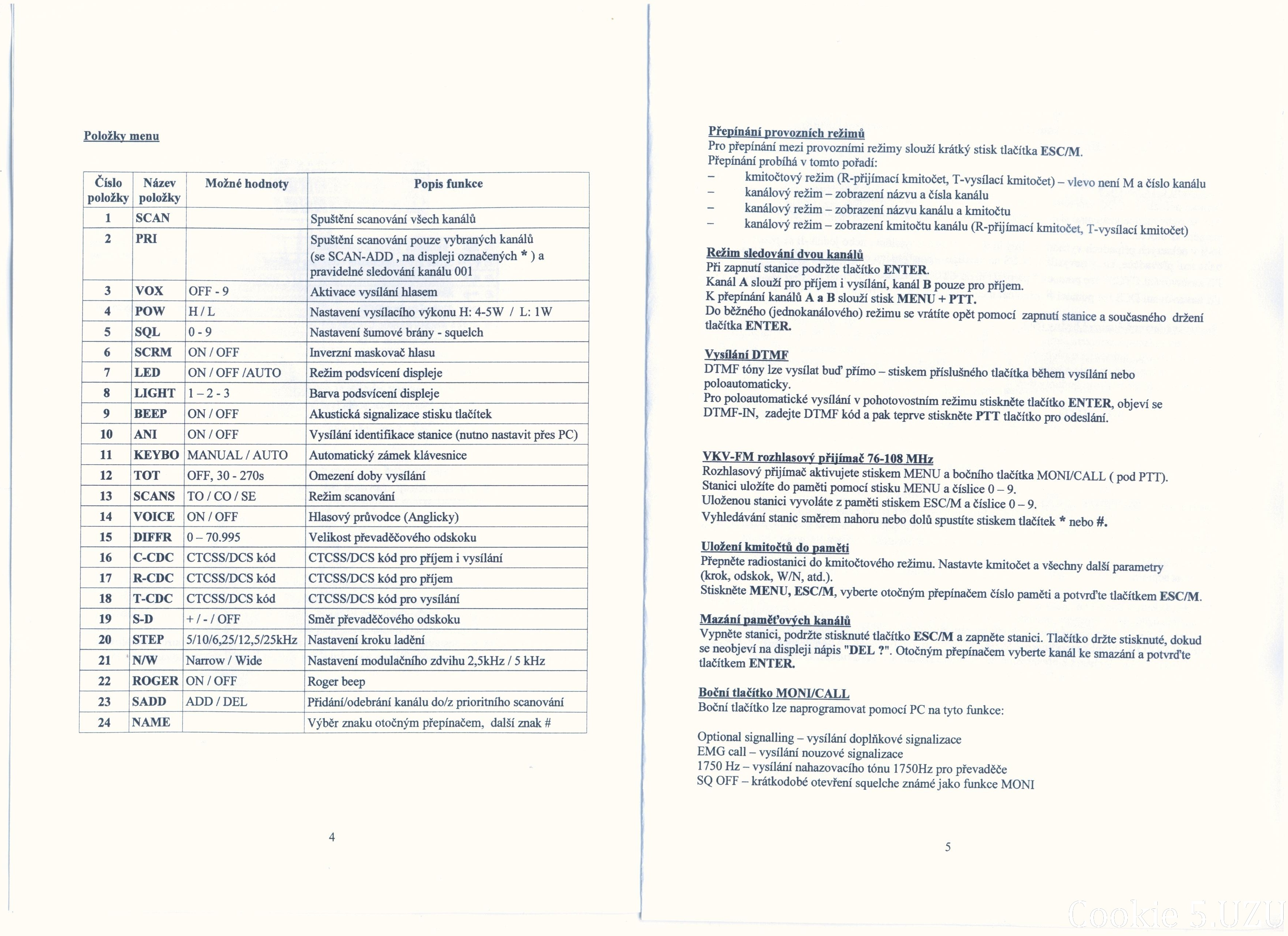 Uživatel Cookie nám prokázal velikou laskavost a poskytl scany českého návodu k velmi oblíbené radiostanici Puxing PX-888. Jsou k dispozici v příloze tohoto příspěvku. Kopírování bez svolení je přísně zakázáno! Já osobně NEJSEM MAJITELEM TÉTO RADIOSTANICE a tudíž mne prosím nekontaktujte s prosbami o pomoc, radu, další materiály a podobně, NEMÁM JAK VÁM POMOCI.