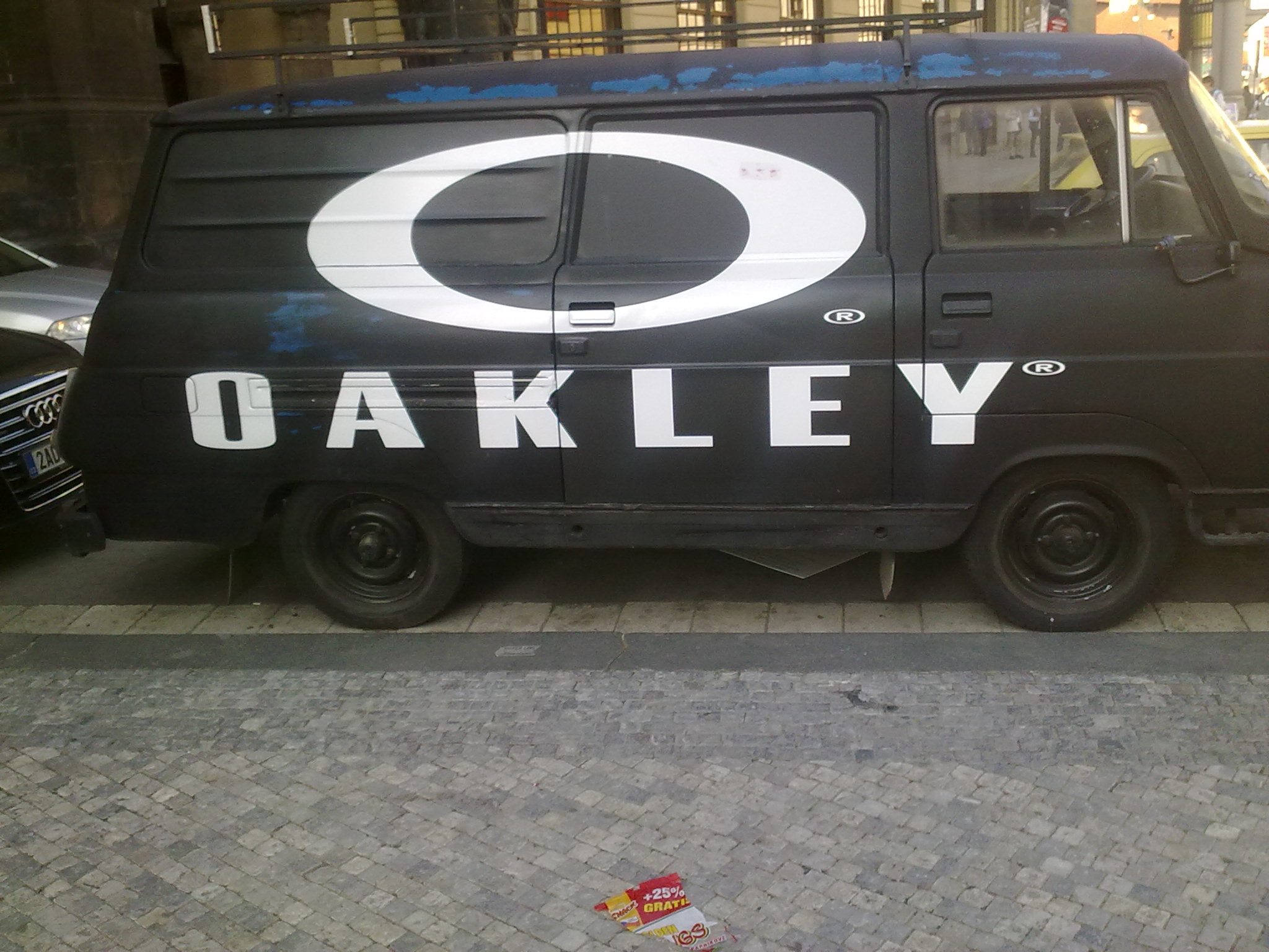 ty vole dvanactset troska  edit: ano vim co je na ni, prave proto  kdyby to bylo na mercedes sprinterovi nebo VW transporter tak to nikomu neprijde divne  ale dvanactset troska uz je dnes rarita, natoz jeste v mafianske barve a napisem Oakley