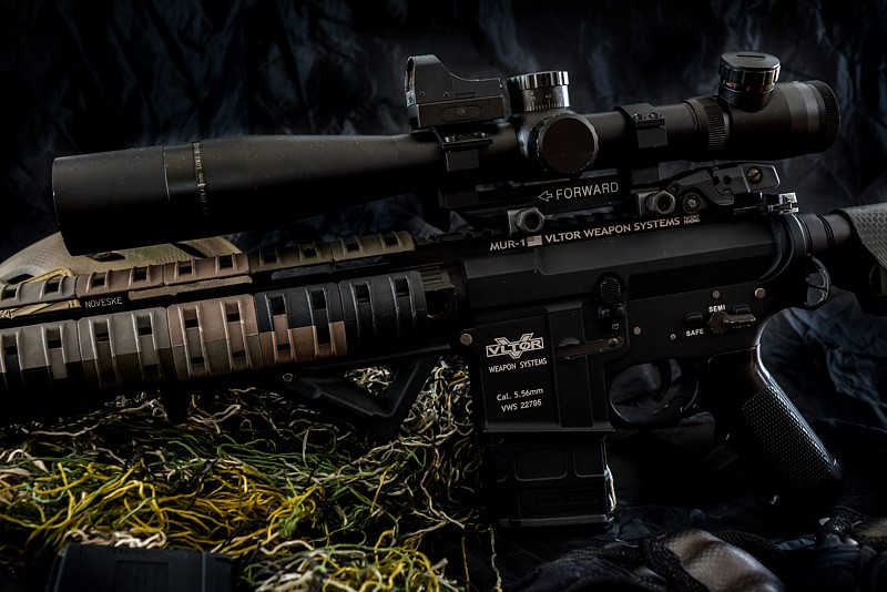 Takova skladacka co kde bylo a hodilo se a ja to zbastlil do jakoze sniperky  Je tam: Vltor telo (G&P) Noveske predpazbi 12.658" (Element) Optika Mark4 Scope Mildot 3.5-10x40 M3 Kolimator Mini Red Dot Miridla Magpul Pazba Crane MK18 ModO LMT (na fotce) nebo VLTOR IMOD Modstock Grip AFG Magpul Zasobniky P MAG (tocaky na 120) Uvnitr je X High-Tech CNC hlinikovej mech Aimtop kola a dalsi dily, Guarder valec, tryska Morris, Prometheus 500m hlaven, ASpro hop komora modra, Aimtop Hop Guma, ASCU procesorovka s mikrospinacem a krmim to nejakou tou 7,4V lipolkou, pripadne 9,6 LiFe. Se 140SHS pruzinou to ma nejakych 134m/s s 0,28tkama.