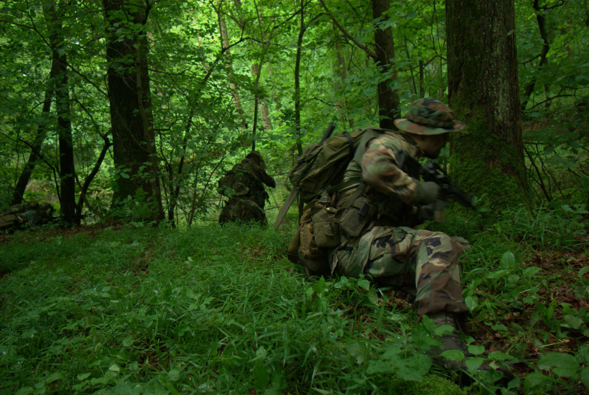 rok 64, RVN, Centrální Vrchovina pán má na sobě tiger stripe obleček, beo gam čepici, M45 harness a zbytek nosného systému ILCE56 a samozřejmě M1919A6  Příloha: