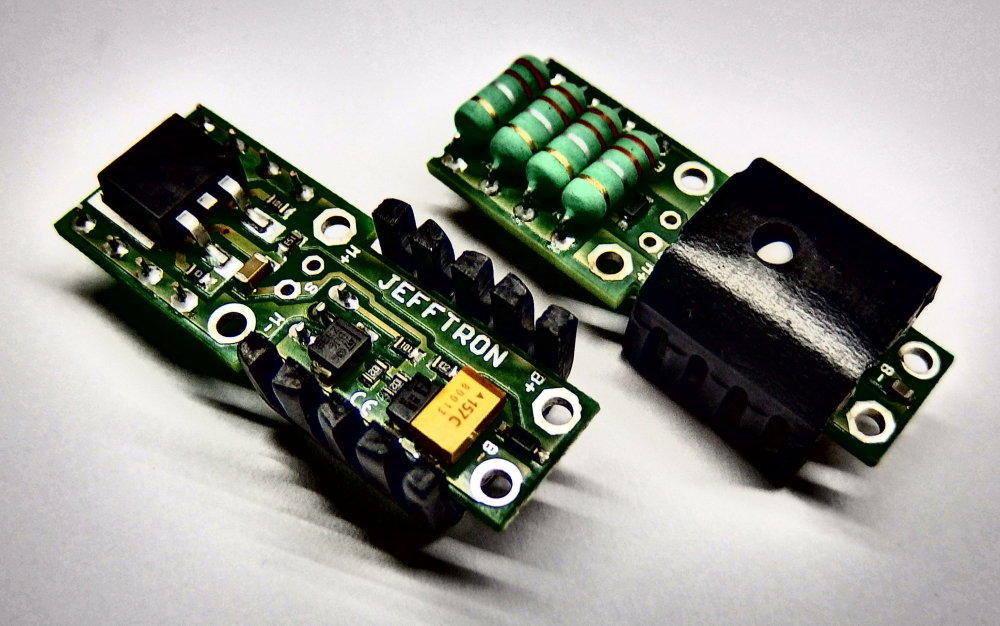 rozdíly oproti normální aktivní brzdě: - Mosfet zvládne špičkové proudy až 400A (klasický mosfet pouze 140A) - Oproti klasickému mosfetu 5x menší odpor při sepnutí = menší zahřívání mosfetu - Masivní chladič, který je na mosfet připájen - Cesty na desce posílené o drátové propojky o průřezu 1,5qmm - více než 2x silnější mosfet zajišťující brždění - 2x více rezistorů změkčující brždění - zvládnou 2x vyšší proudy - předpokládaná výdrž až do pružiny M170 bez omezení - velikost zařízení 51x20x15mm