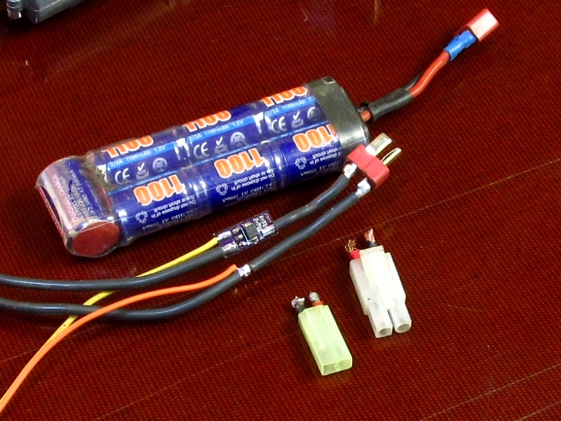 Také jsem dostal Jeffův mikromosfet na testování a zde jsou mé postřehy: Pájení bylo naprosto bez problémů, použil jsem silikonové kabely 1,5mm. Myslím, že schéma zapojení je naproto jasné pro každého kdo má alespoň základní zkušenosti s upgradem. Sám jsem zapojení upravil tak abych ho mohl přes konektory připojit i na zbraň která má 4 vodičový vývod na Jeffovu procesorovku. Mosfet jsem nezkoušel nikam instalovat jelikož jsem měřil jeho teplotu při testování, ale je opravdu malý a myslím si že se nenajde zbraň kde by se na něj místo nevymyslelo. Mosfet jsem testoval na dvou zbraních a to MP5 SRC a costum AR-15. Při testování jsem použil 7,4V 30-40C 2200mah Truningy lipo a 11,1V 40-80C 1400mah Turningy nano tech lipo. MP5 SRC: Motor původní SRC magnetar (neodynyové magnety), pružina GD 110, píst kola vše původní, nově promazána přopodložkována. Vytřílel jsem ze zbraně 3klasické točné zásobníky do MP5 a to středními dávkami ihned po sobě (rozestup mezi dávkami minimální pouze na puštění zpouště popřípadě přemíření) a sériemi jednotlivých ran hned po sobě. Mezi zásobníky byl čas pouze na doplnění a natočení točáku. 1. zásobník 22-30,5°C 7,4V 2. zásobník 25-32°C 7,4V 3. Zásobník 25-33°C 11,1V Jak je vydět tak mosfet zvládal bez problémů a i za čas přebytí zásobníku stačil vychladnout. AR-15 Motor Systema magnum, SRC zátěžové šikmáče, GD M140, dobře vypodložkována a promazána. Ze zbraně jsem vystřílel 2 a půl standartních točáků do M16, Opět postup střelby stejný jako u minulé zbraně, ale zde byli zásobníky vyměňovány okamžitě - čas nutný pouze na výměnu zásobníků ve zbrani. 1. 19,2-48°C 11,1V 2. 44,7-60°C 11,1V 3. 59-81°C 11,1V