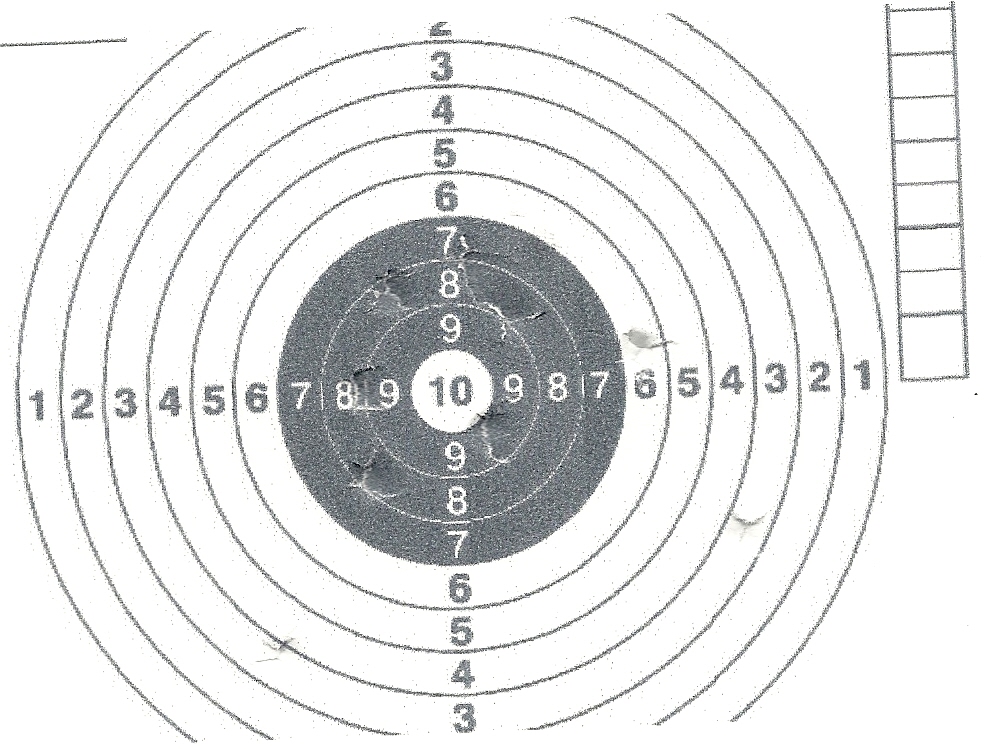Priemer čierneho kruhu v terči je 4 cm Strieľal som z 10 m v 0,5 sekundovím odstupom