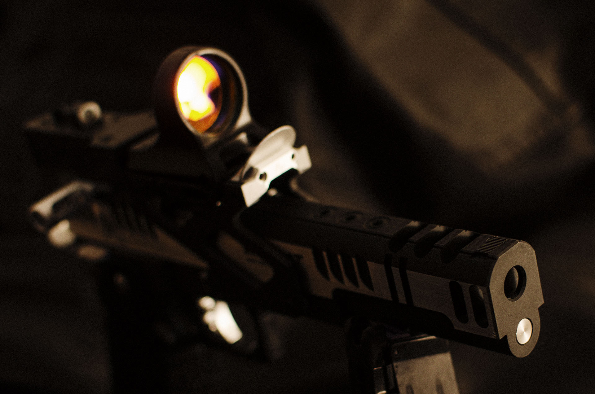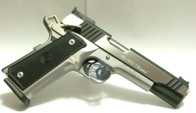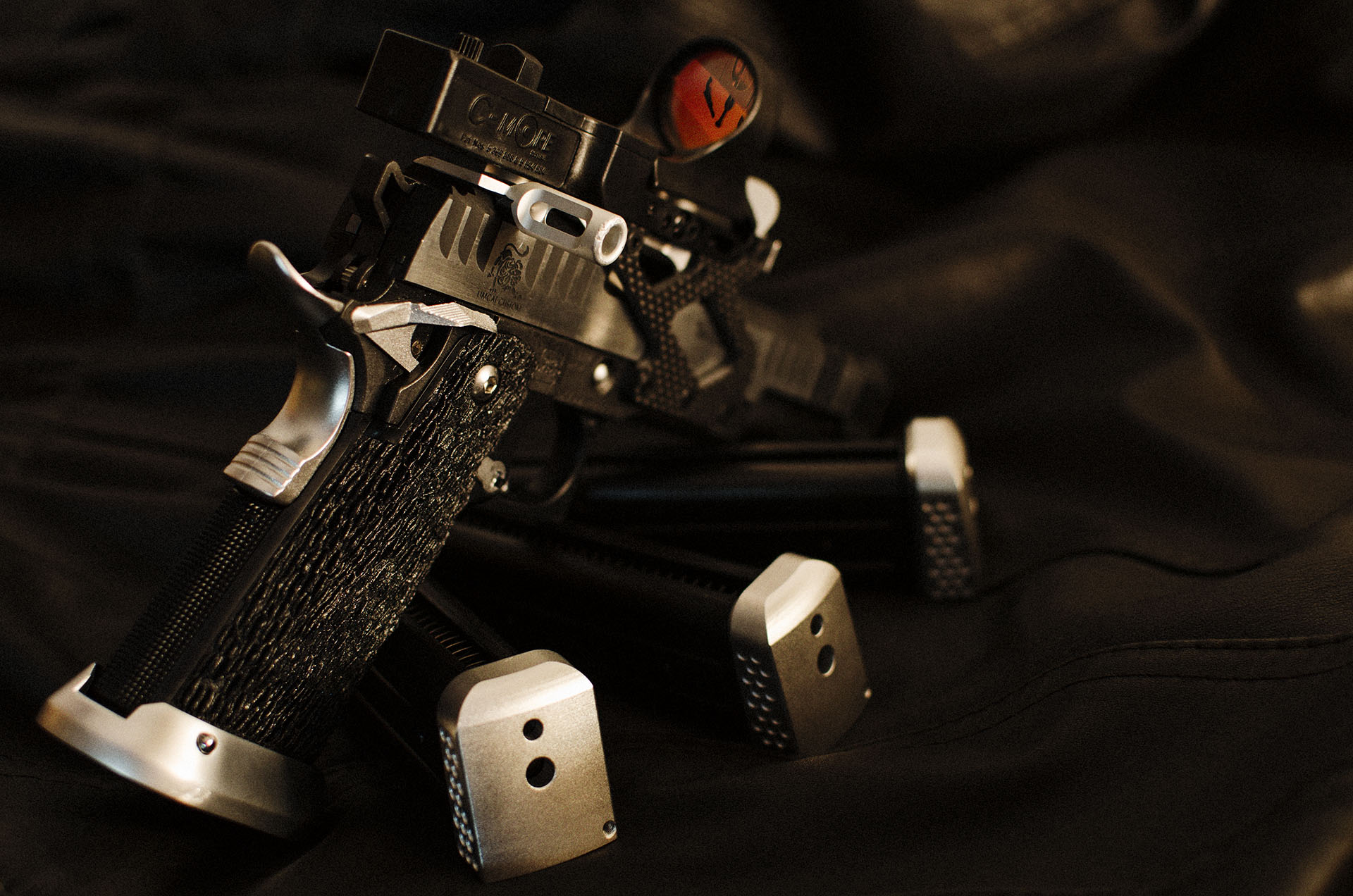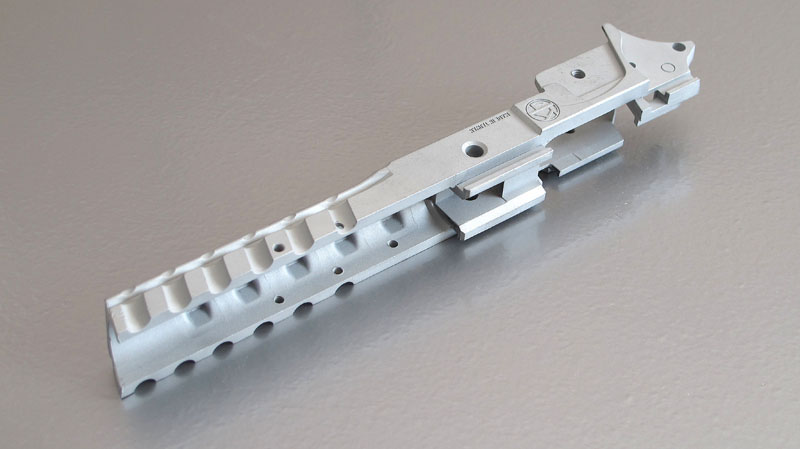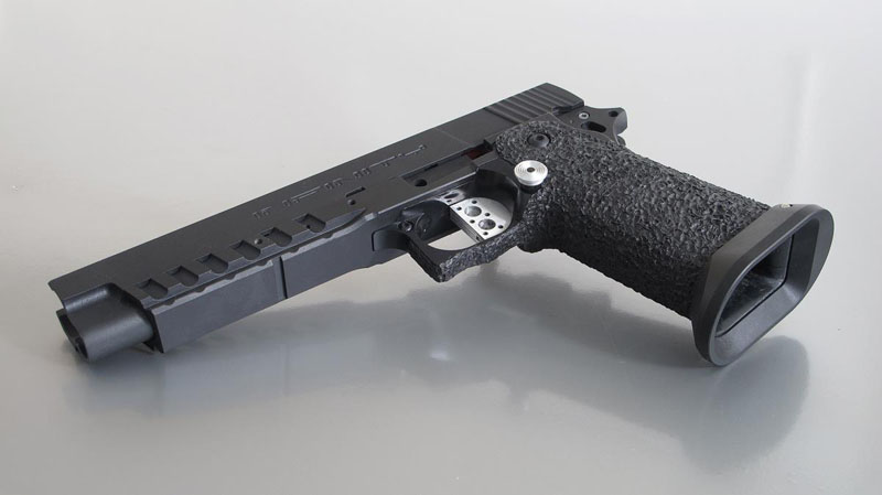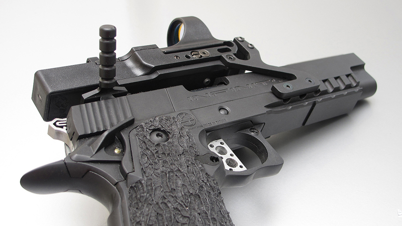 TM Hi-capa 5.1 - Limcat custom Gunsmith - Mike Cripps - EnglandZáver - ProHandgun Limcat Wildcat custom 6" + kompenzátor + oceľová vonkajšia hlaveň Rám - Tokyo Marui Hi-capa 5.1 čierna so striebornými ovládacími prvkami Elite Custom - 6" nerezová vnútorná hlaveň 6.02 mm ProHandgun duralová nastaviteľná spúšť - odpor 0,9 kg ProHandgun oceľové kladivo STI style magwell AIP loading nozzle NineBall HopUp AIP Blowback light unit Guarder springs 150% C-more replika AIP carbon montáž na optiku Elite Custom grip duralová naťahovacia páka hammer plate (ochrana záveru pred odtlačením od kladiva) duralový thumb rest AIP magazine bases - duralové - strieborné Skrátený chod záveru - short stroke buffer