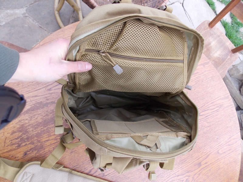 Vzhľad:Hľadal som aspoň čiastočne civilne vyzerajúci batoh v čiernej/púštnej verzii. Nakoniec kedže obľubujem hnedú som zvolil Coyote verziu. Ako som si za posledný týždeň všimol batoh budí dosť pozornosti v coyote prevedení.... v čiernom ale pôsobí o dosť civilnejšie. Odtieň je celkom obstojný, na fotkách možné vidieť porovnanie s Coyote sumkami od Warrioru a odhadzovákom od MFH.