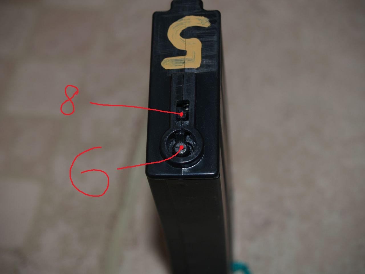 8. Další plus které vás asi dostane, po vyndání zásobníku vypadnou pouze 2 kuličky - díky konstrukci jezdce (č.6) který tlačí kule až do hopkomory viz obr.3