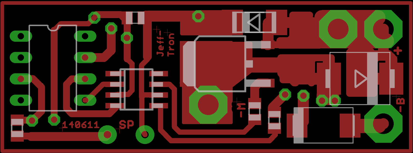 Jeryk: deska ma velikost 48x18mm woliwitz: je to delane do 15V, takze maximalne 11.1V lipol, popripade muze byt 13,2V life woliwitz a Darken01: testoval jsem to na M130 airsoftpro (silou asi jako m150), lipolka 11.1V a cinsky zatezovy motor, soucastky po delsi strelbe mirne vlazne. Nicmene to pristi tyden posilam na testy, kde maji k dispozici i m190 pruzinu, podle vysledku urcim na jakou max pruzinu to bude urceny. M150 by nemela byt problem.