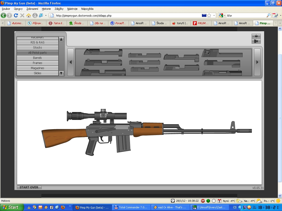 Takhle by to moje SRko nevypadalo vůbec špatně  akorát tam nemají magpul magazine SR25...jinak nedivte se tomu kolimátoru - u airsoft SRka mi přijde optika fakt zbytečná ačkoliv bych tam rád měl M3. Ale použitelnost minimální. P.S. jen jak budou mít XTM rail krytky, tak je tam prásknu