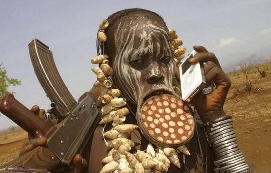 naprosto běžné u některých kmenů. Někdy jsem i viděl že si tam narvali misku. Kdo ma větší věc narvanou v hubě tím prý patří k bohatší rodině
