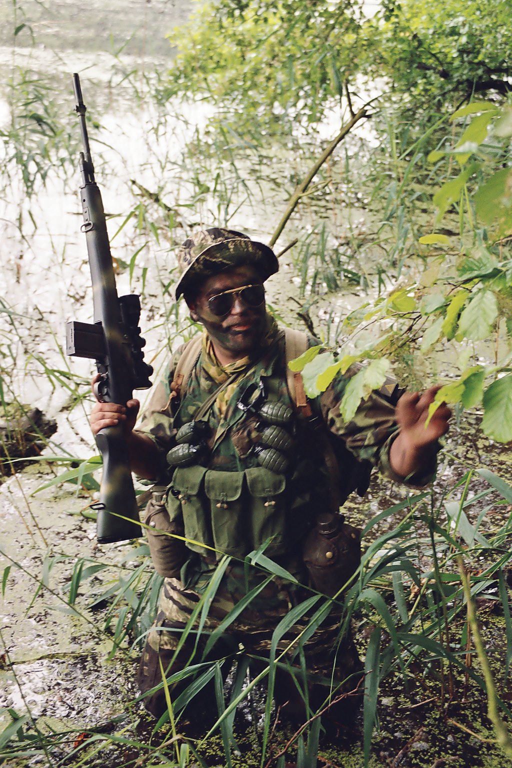 Je zvlastni ze zrovna z nejproflaklejsi knizce o odstrelovacich neznas fotku namaskovany (sprejema) XM21 v rukou vojaka z 173rd. a ten bandos....tvrdil sem nekde ze se do nej cpali zasobniky do M14?  mimochodem je pravda ze se s M14 urcite nenosil a tady je "trochu" mimo misu  Mimochodem maskace a vlastne komplet byl od MTJ Tigrovy gate, erdlovej vrsek, tajgrover klobrc................................................................................................................................ muj byl jen kver a brejle  jo jeste boty ktery sem pak odhovnoval snad tejden. Jo a to ze polezem ve vsem do tech hoven vyyslel prave Martin  taky sme se pak brali u nej na zahrade hadici