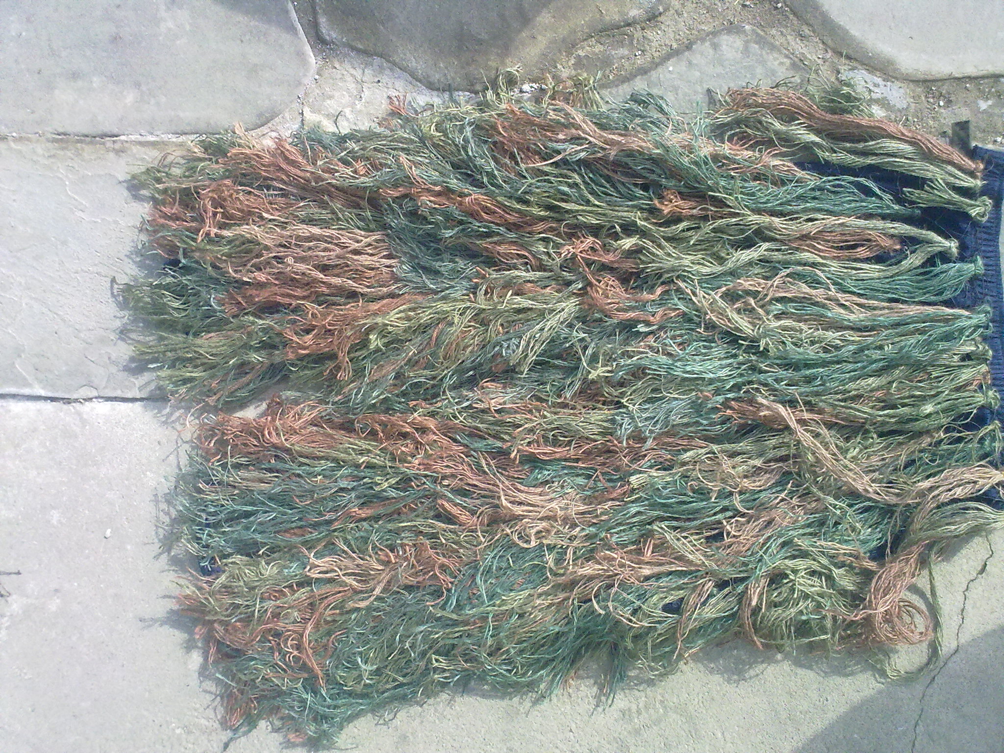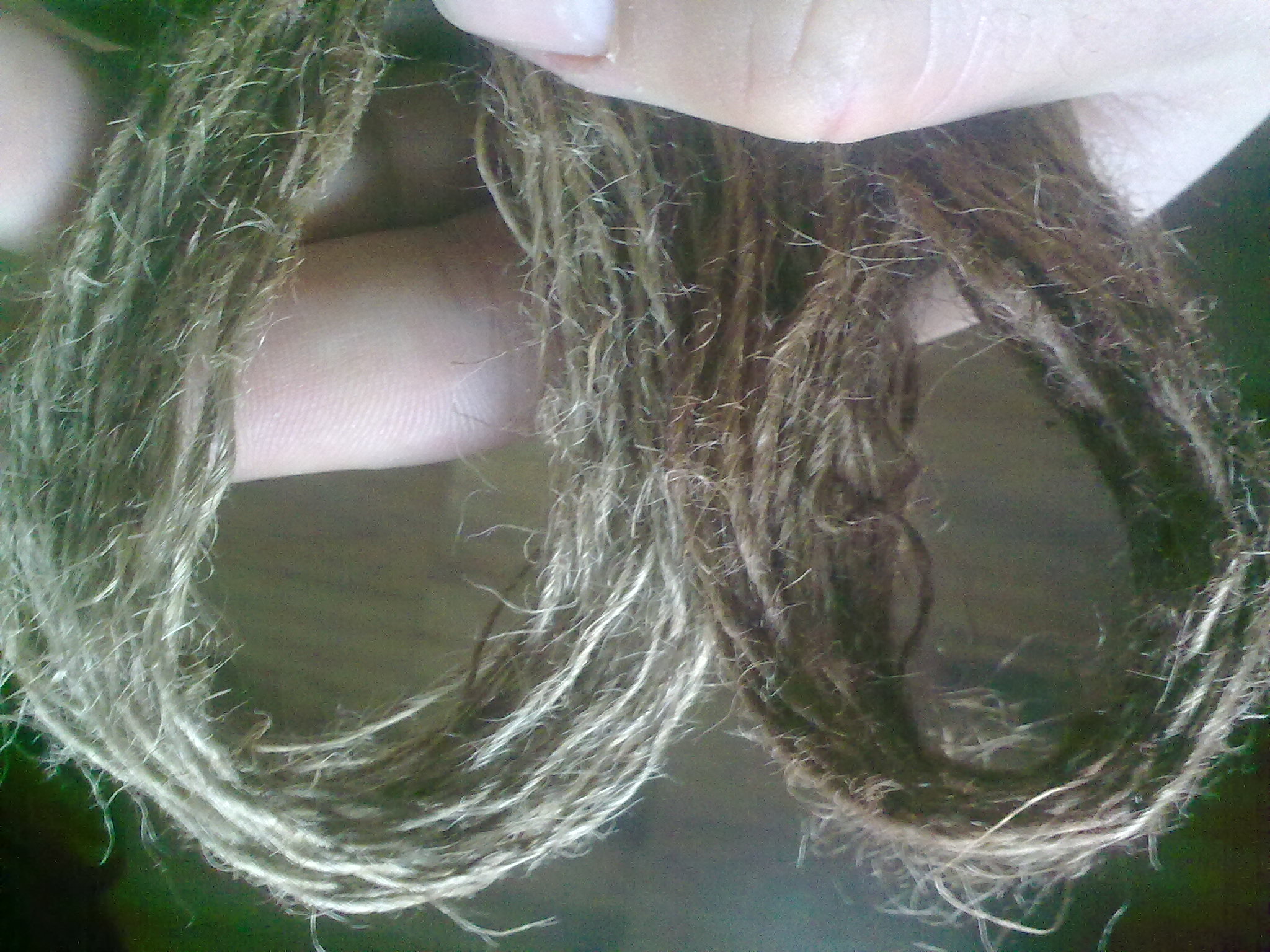 konečne vyschla juta a celkom pekne chytilo tu hnedu zaradom zelená / pôvodná farba juty / svetlá hnedá / dnešná tmavo hnedá Příloha: