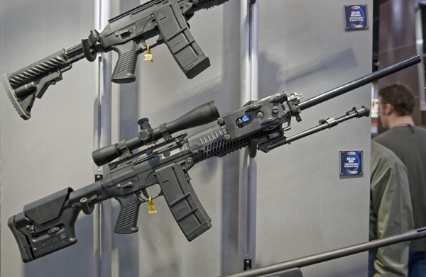 SR25 od KAC užívají spíš mariňáci nebo speciálové. Má často buďto klasickou pevnou pažbu bez regulace délky nebo pak různé vysouvací crane stocky a tak. Celý systém se jmenuje Mk 11 mod 0.