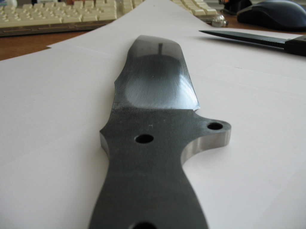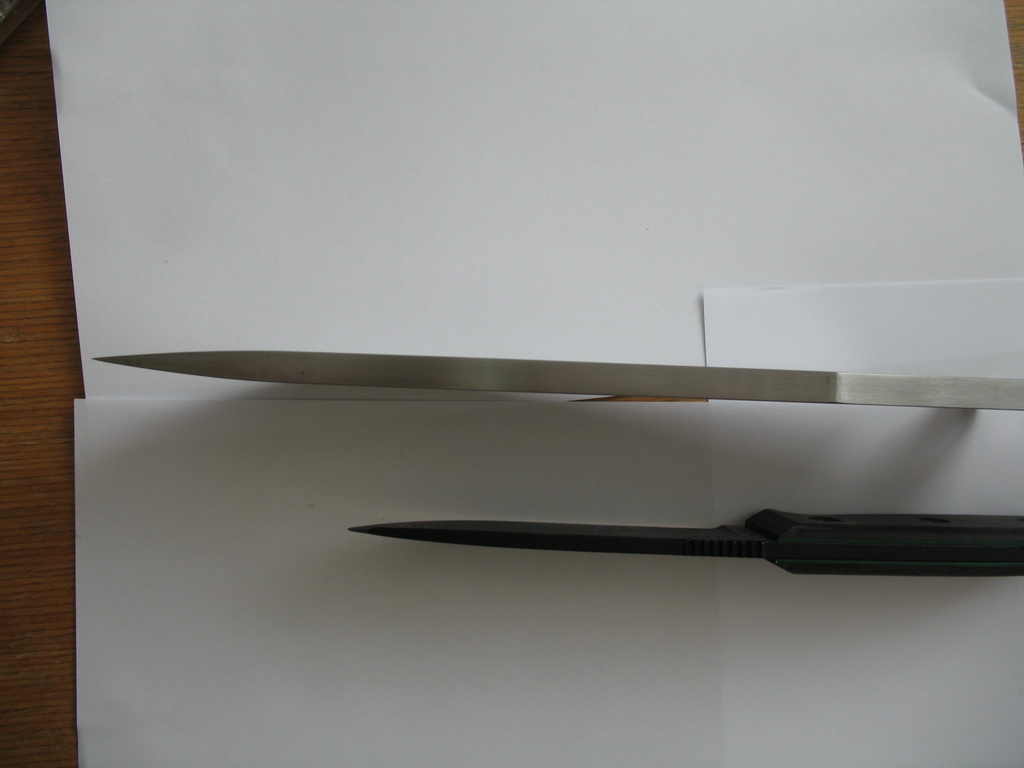 Tak je tady ten památnej den, dorazila mi vybroušená a zakalená čepel od nožíře  Je to full konvex(tzv čočka) nabroušená tak, že jednim lehkym tahem rozíznete A4 na výšku a kalená není jeko celek, ale ostří je o moc tvrdší než hřbet....což znamená, že je nůž parciálně popouštěnej a ve hřbetu má navíc 8mm  .....nožíř prohlásil, že lidskou silou nůž v podstatě nejde zničit a potom, co jsem viděl jeho práce na knife.cz tomu skutečně věřím Tímto děkuji nožíři s nickem Želva, za úžasnou práciNůž při nejbližší příležitosti dobrousím, ostřenkuju a navrhnu a nechám vyrobit koženej kabátek, aby mu nebyla zima Přikládám fotky - porovnání velikosti s ESEE4 a CZ75D od ASG, porovnání síly hřbetu - ESEE má cca 4,8mm, porovnání velikosti s Acronem, kterýho asi dost z Vás bude znát, hmotnost, porovnání s původním polotovarem a nakonec přikládám fotky přibližný podoby pouzdra z netu. Mám takovou radost, že se asi popupínkuju....už jsem se stihnul i říznout
