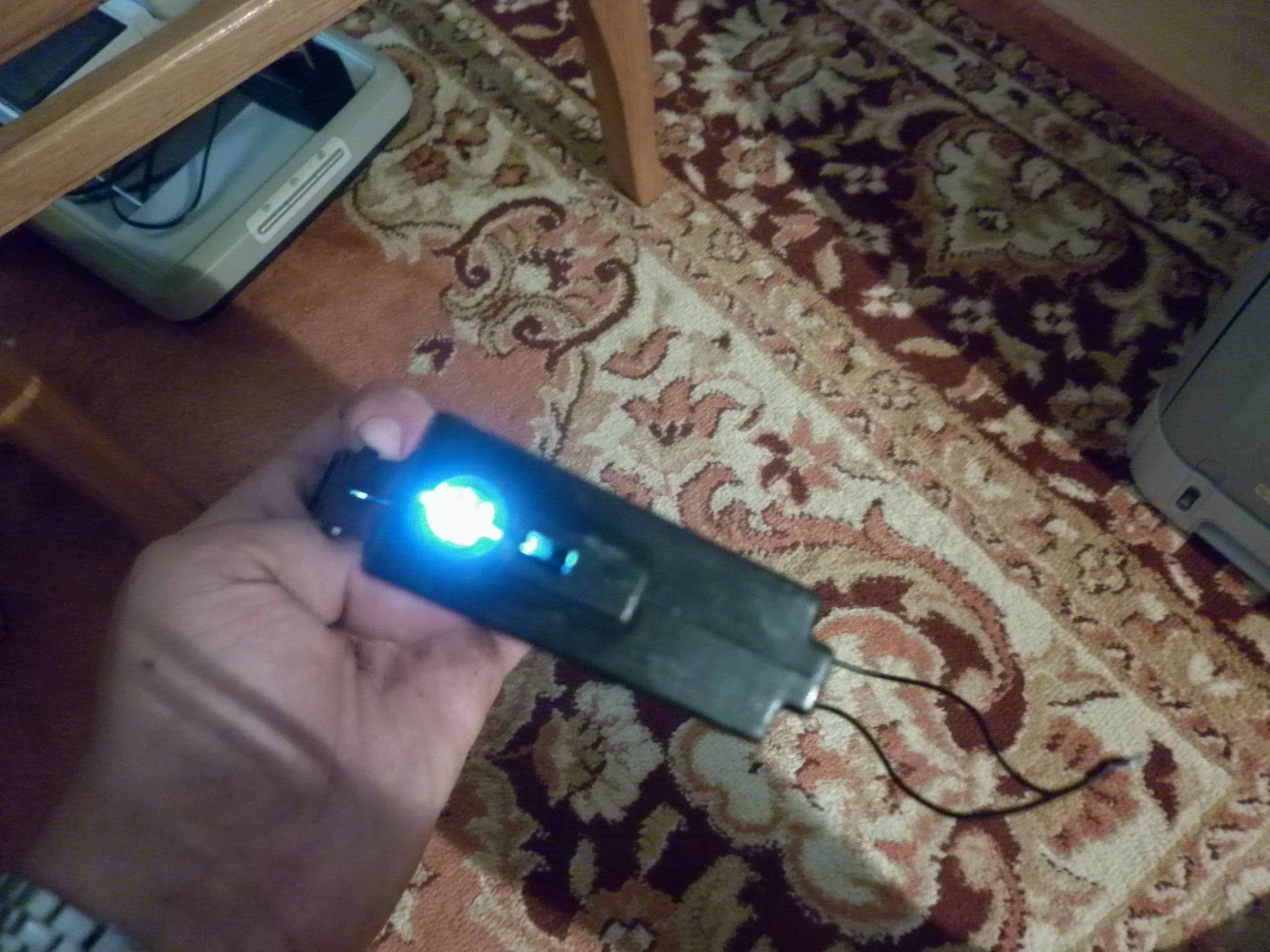 Tak a hotovo  zasobnik pripraveny na skusku. Suma sumarum. V zasobniku su 4 vysoko svietilve LED pekne pod sebou (fotka1) zasobnik sa bude zapinat spinačom na spodnej strane zasobnika (zatial tam nieje) Napajanie 2x AAA litiove baterie. predpokladana doba svietenia cca 8 hodín. Baterie sa menia po zhodení kovového kritu (fotka 2) pohlad na zostaveny zasobnik a zapnuty fotka 3. Skuska prebehne 28. v noci na akcii. Video alebo fotky dodam pak. Uvidime aky bude výsledný efekt.