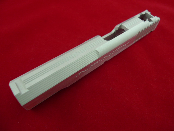 TM Hi-capa 5.1 - Limcat custom Gunsmith - Mike Cripps - EnglandZáver - ProHandgun Limcat Wildcat custom 6" + kompenzátor + oceľová vonkajšia hlaveň Rám - Tokyo Marui Hi-capa 5.1 čierna so striebornými ovládacími prvkami Elite Custom - 6" nerezová vnútorná hlaveň 6.02 mm ProHandgun duralová nastaviteľná spúšť - odpor 0,9 kg ProHandgun oceľové kladivo STI style magwell AIP loading nozzle NineBall HopUp AIP Blowback light unit Guarder springs 150% C-more replika AIP carbon montáž na optiku Elite Custom grip duralová naťahovacia páka hammer plate (ochrana záveru pred odtlačením od kladiva) duralový thumb rest AIP magazine bases - duralové - strieborné Skrátený chod záveru - short stroke buffer