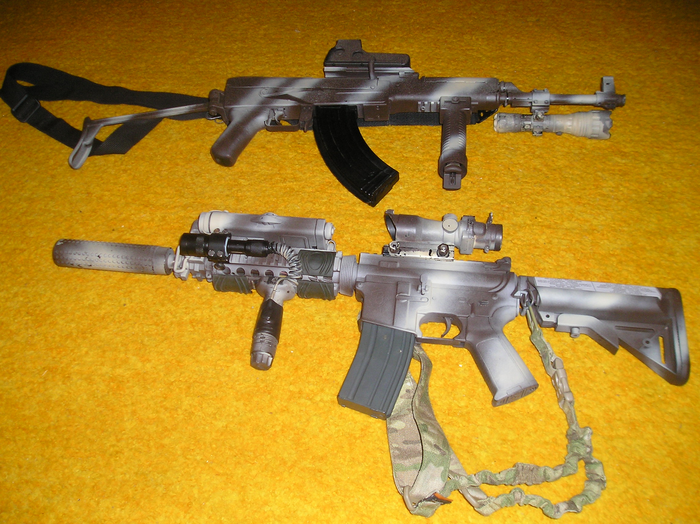 Tak sem taky něco přihodím. AKM - tělo+pažbička z airsoft dílů,hlaveň soustružená z oceli,zbytek real steel. http://kubanec158.rajce.idnes.cz/AKM_custom/LCT AMD-65 - to je novej mazel,kvér na cqb,zpracování fantastický,komplet ocel,povrchová úprava chemický černění,hlavně neokoukaná zbraň. http://kubanec158.rajce.idnes.cz/LCT_AMD-65/